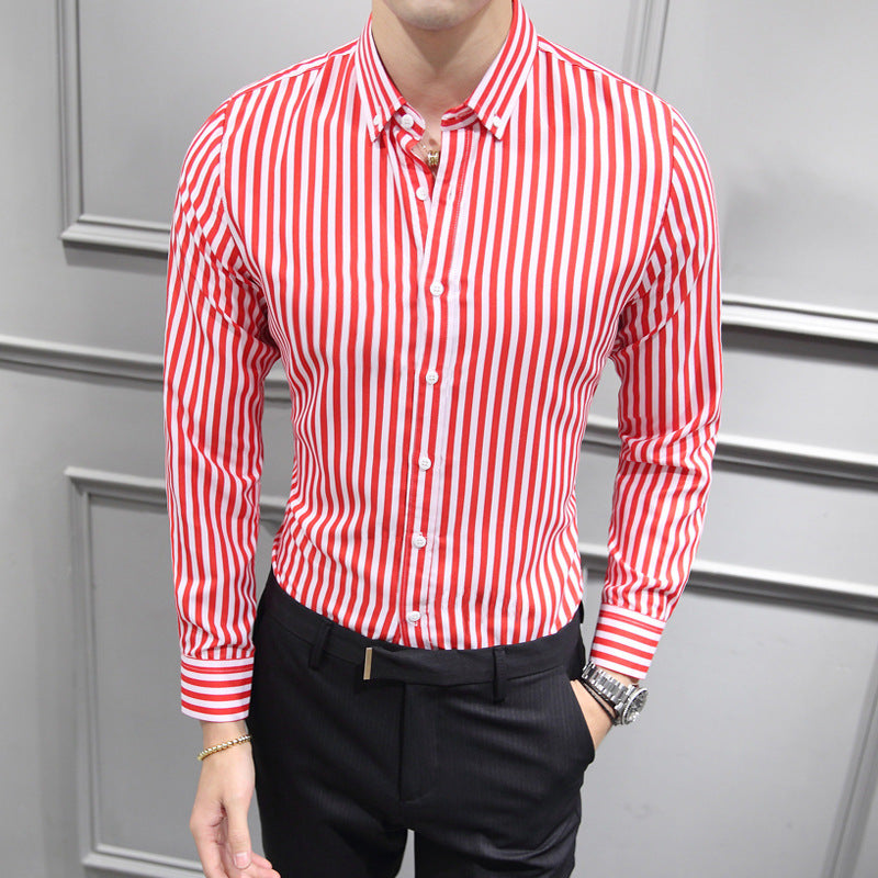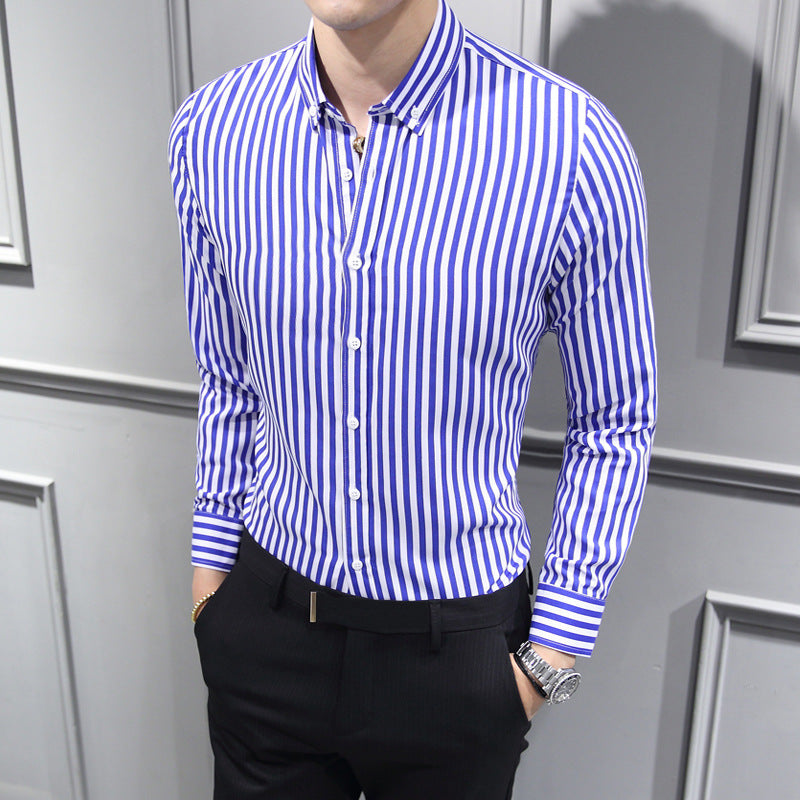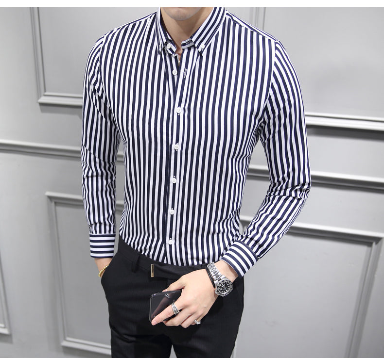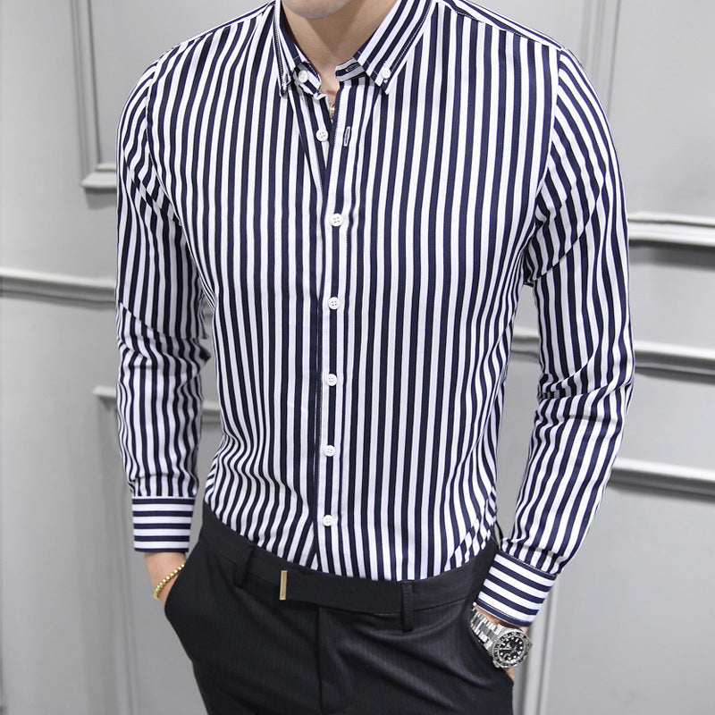 Men Shirt Fashion Slim Fit Shirt Long Sleeve Shirt Large Size Casual Top Spring Men's Long Sleeve Shirt Striped Coat Top Men's Shirt Handsome Casual Shirt