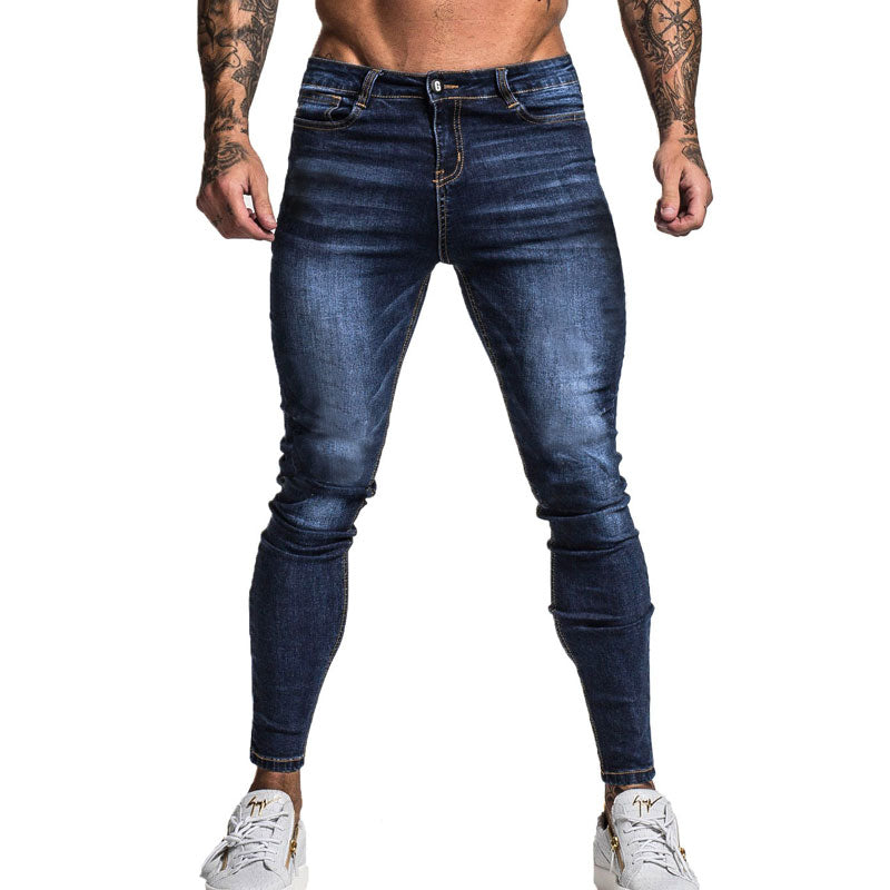 Men Pants Straight Leg Pant Men's Tight-Fitting Solid Color Stretch Denim Casual Skinny Pants