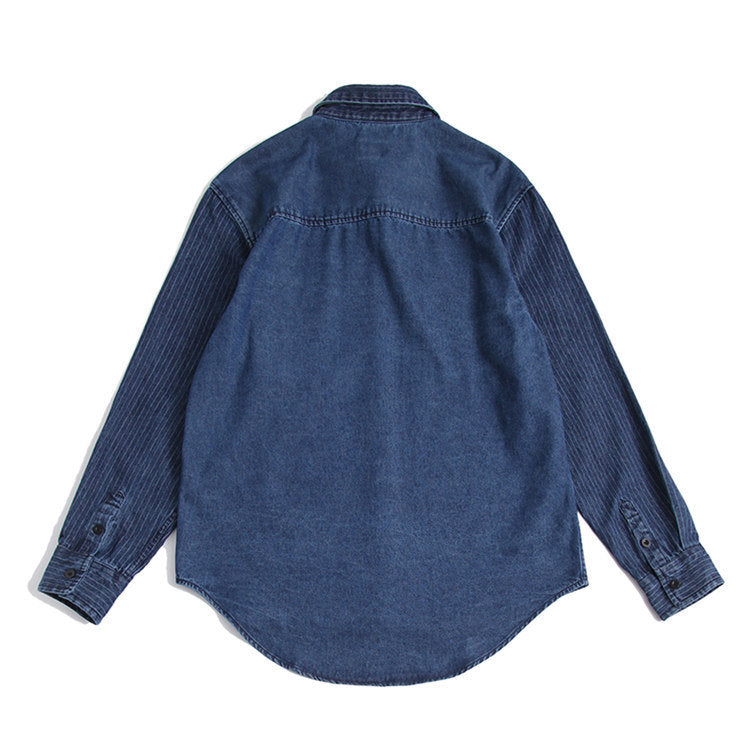 Men Shacket Long Sleeve Autumn Shirt Autumn Shirt Solid Color Mixed Color Stripe Sleeve Loose Casual Denim Shirt