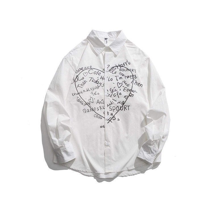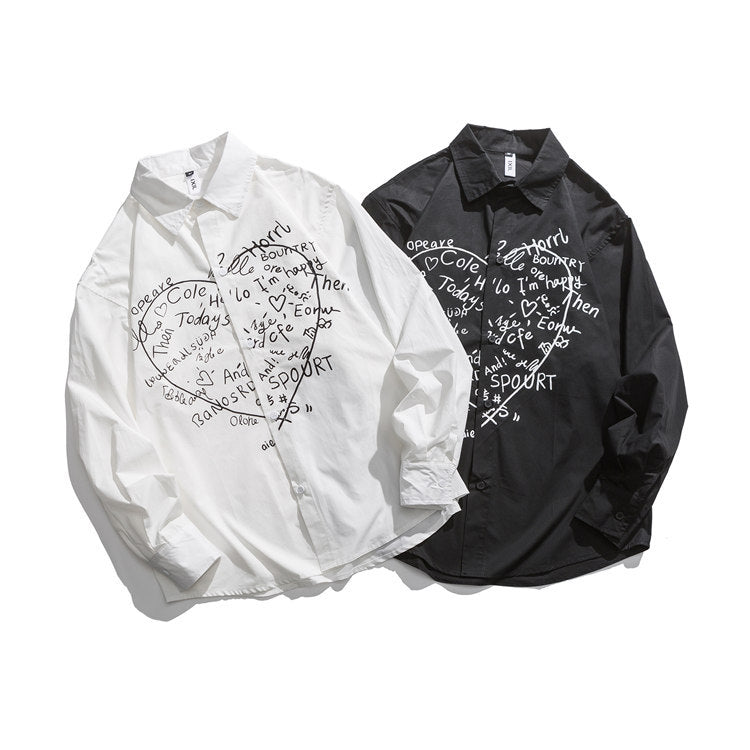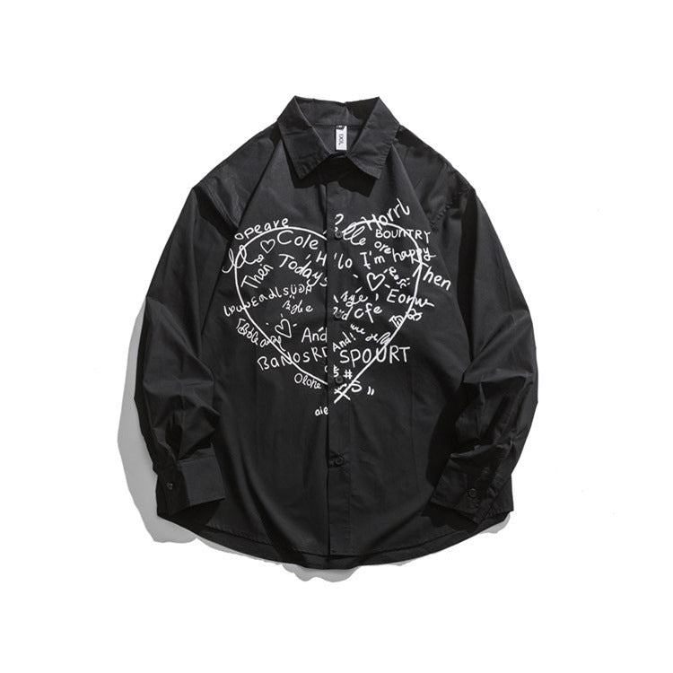 Men Long Sleeve Autumn Loose Printed Green Casual Shirt