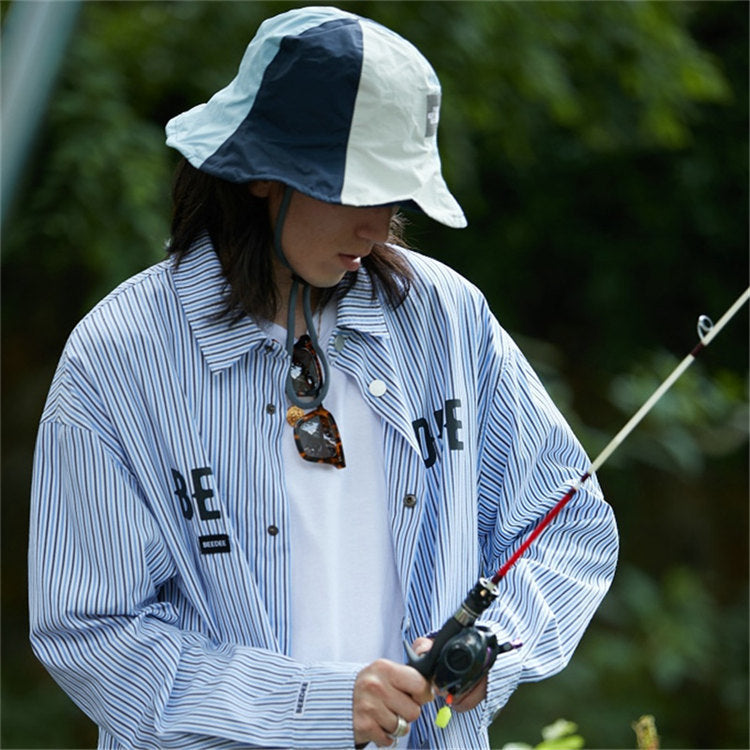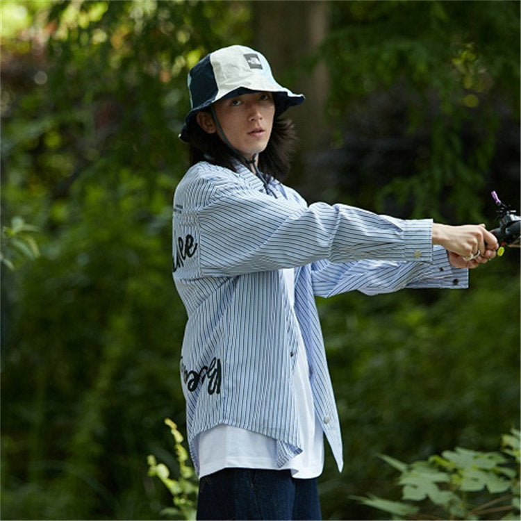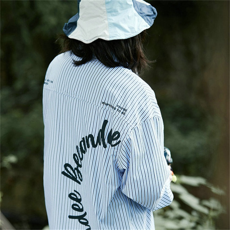 Men Shacket Long Sleeve Autumn Shirt Autumn Shirt Back Letter Print Loose Shirt
