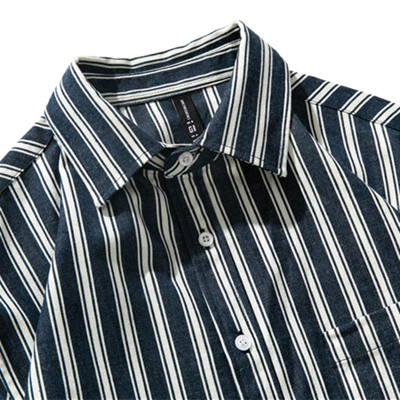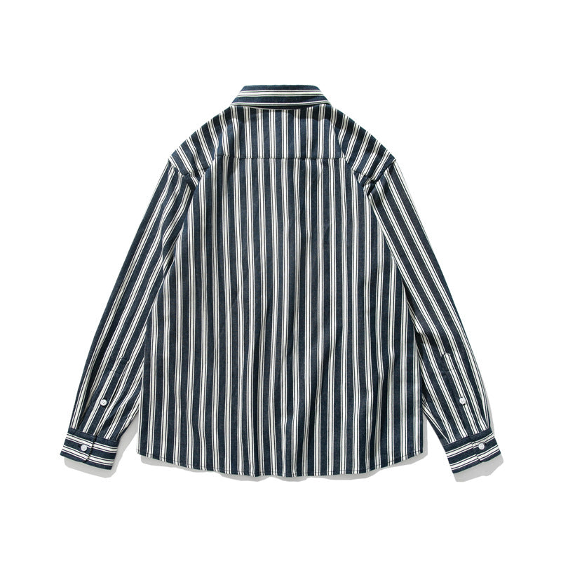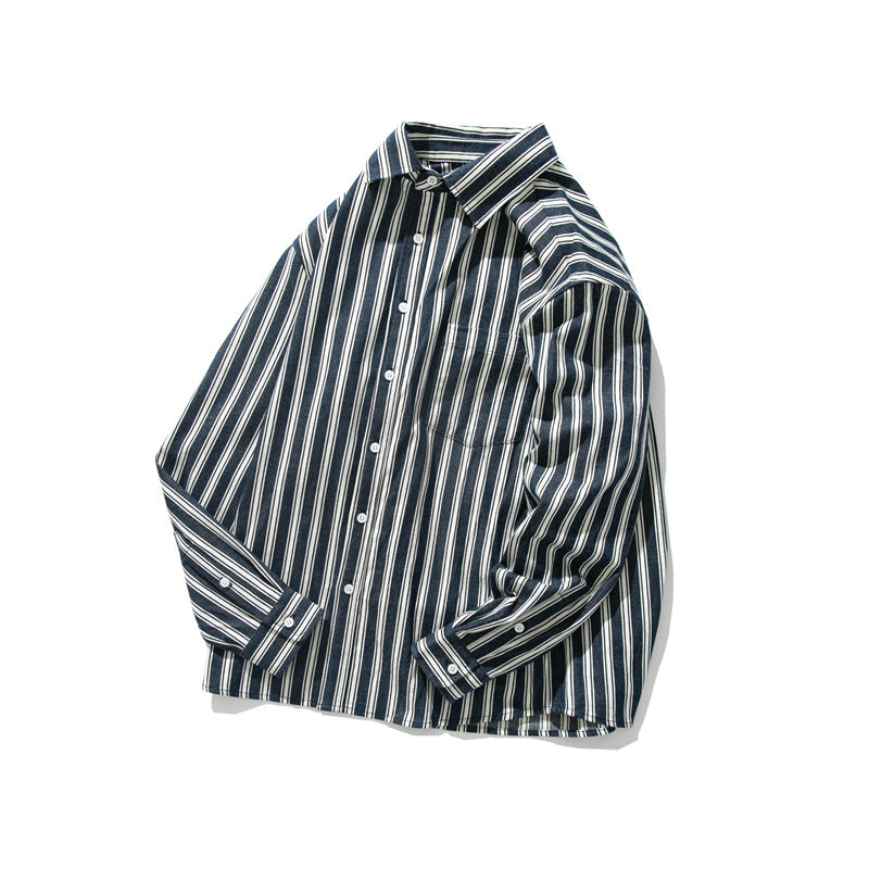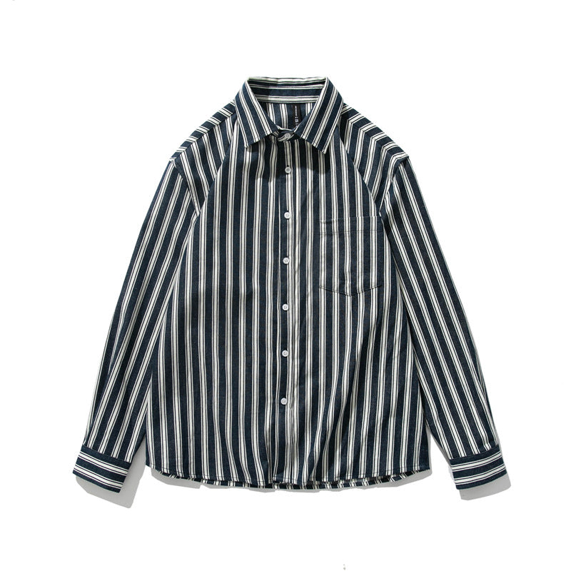 Men Shacket Long Sleeve Autumn Shirt Autumn Retro Casual Loose Blue and White Striped Shirt for Men