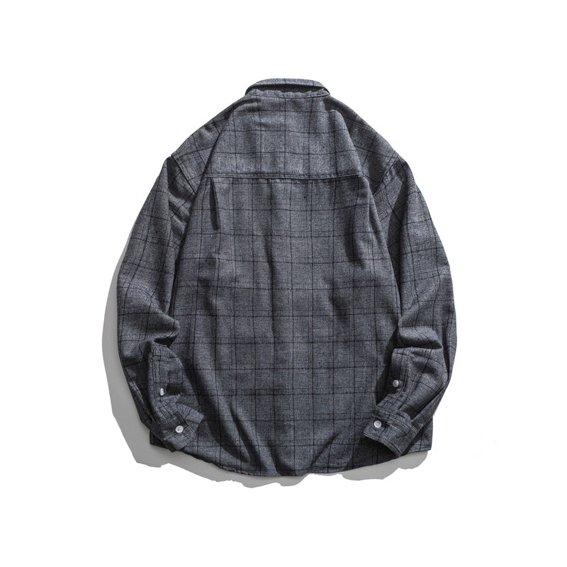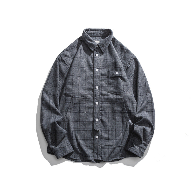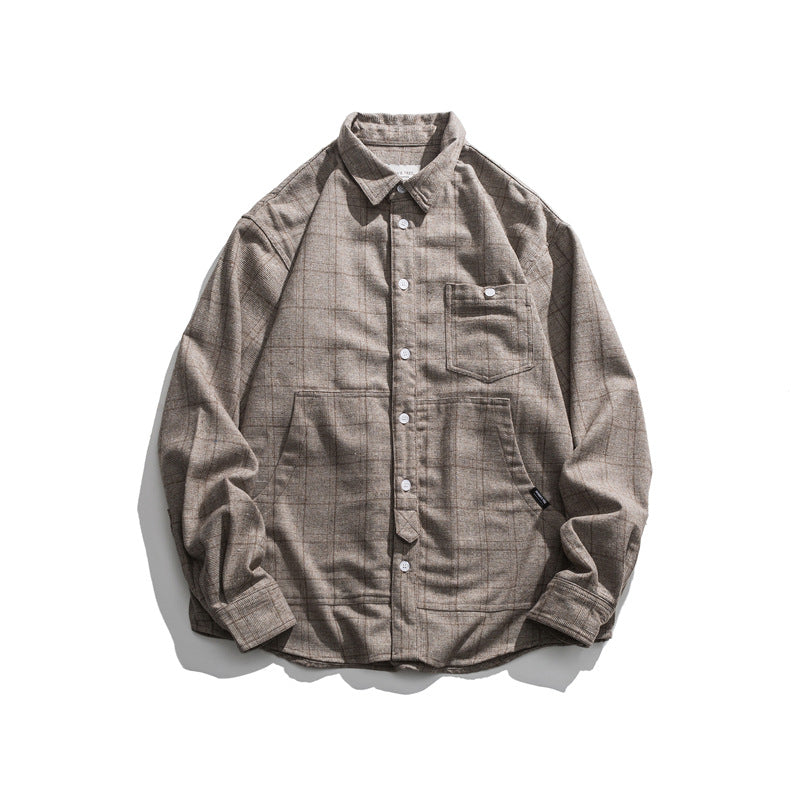 Men Shacket Long Sleeve Autumn Shirt Fall Vintage Shirt Loose Two-Pocket Plaid Shirt for Men