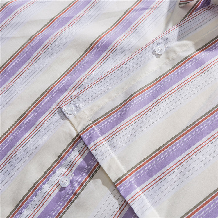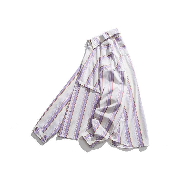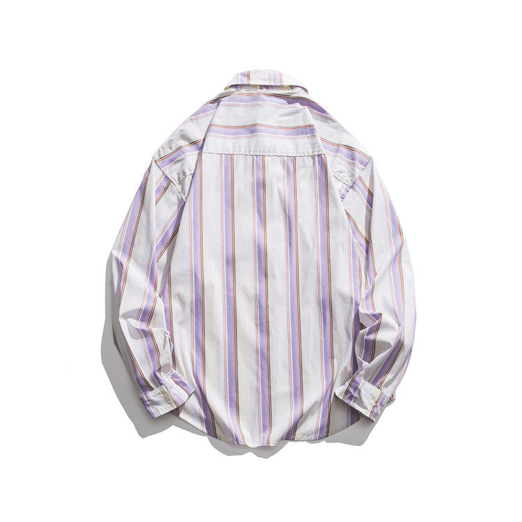 Men Shacket Long Sleeve Autumn Shirt Fashion Loose Vertical Stripe Shirt
