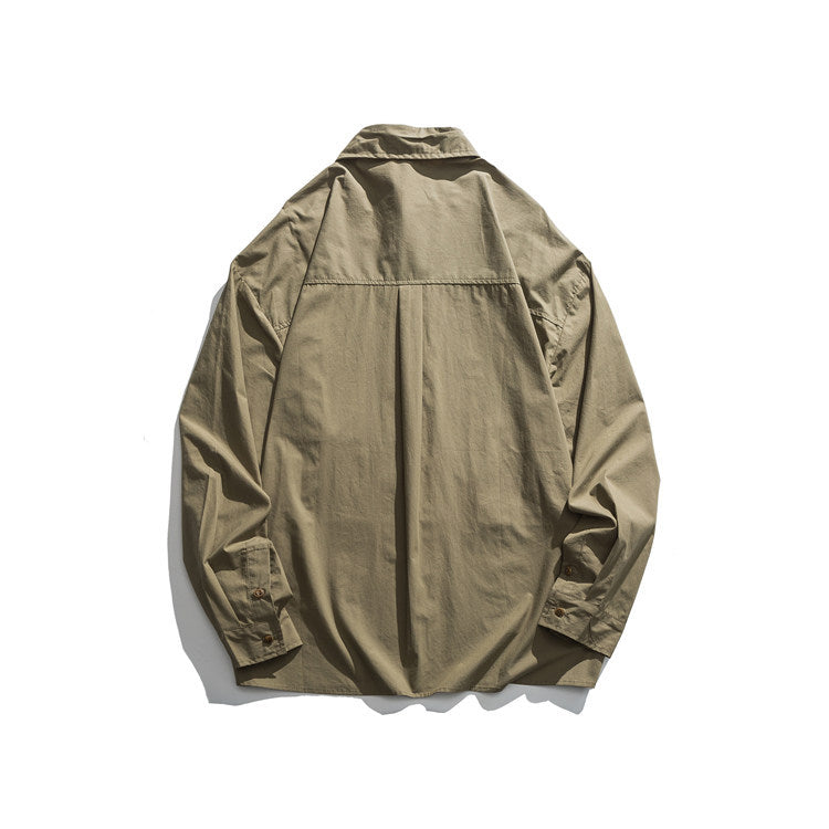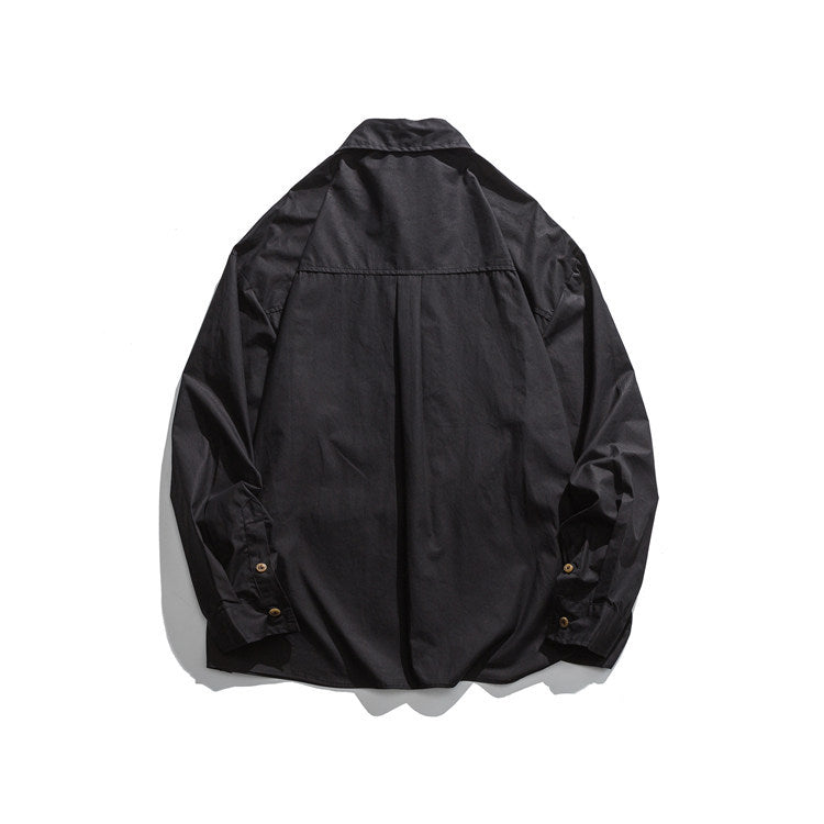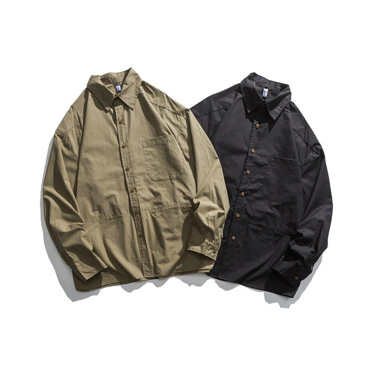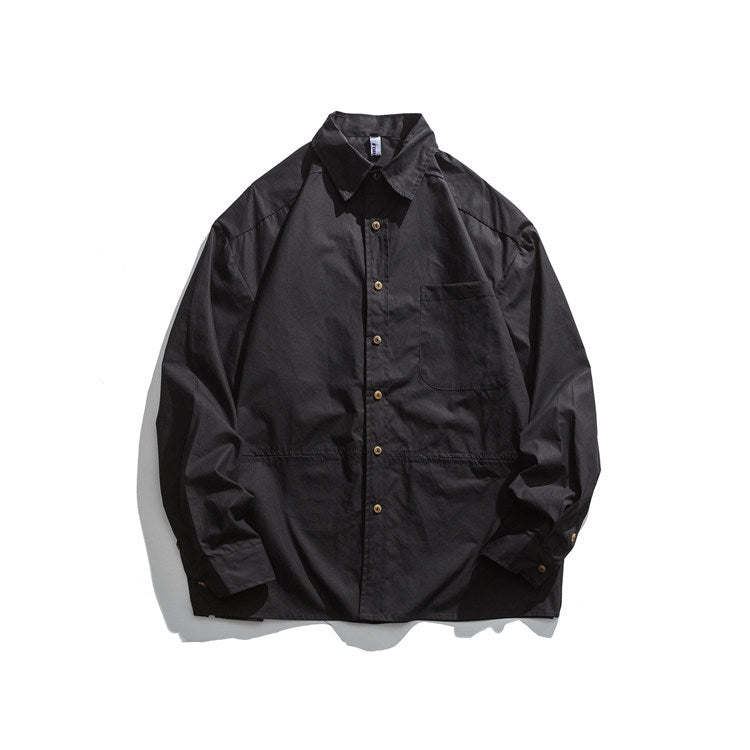 Men Shacket Long Sleeve Autumn Shirt Autumn Solid Color Simple Fashion Loose Retro Workwear Shirt Men