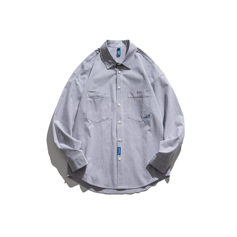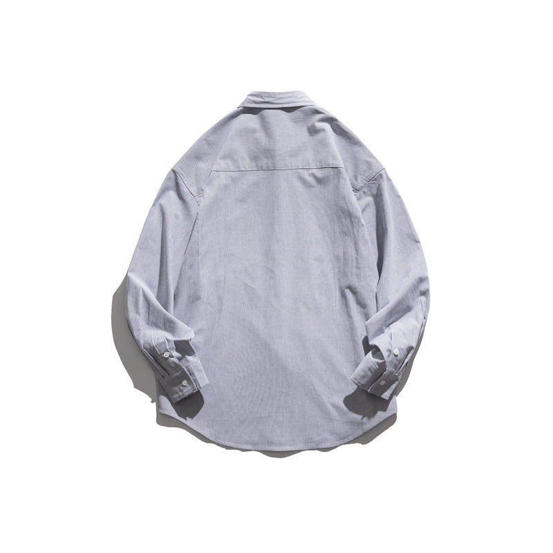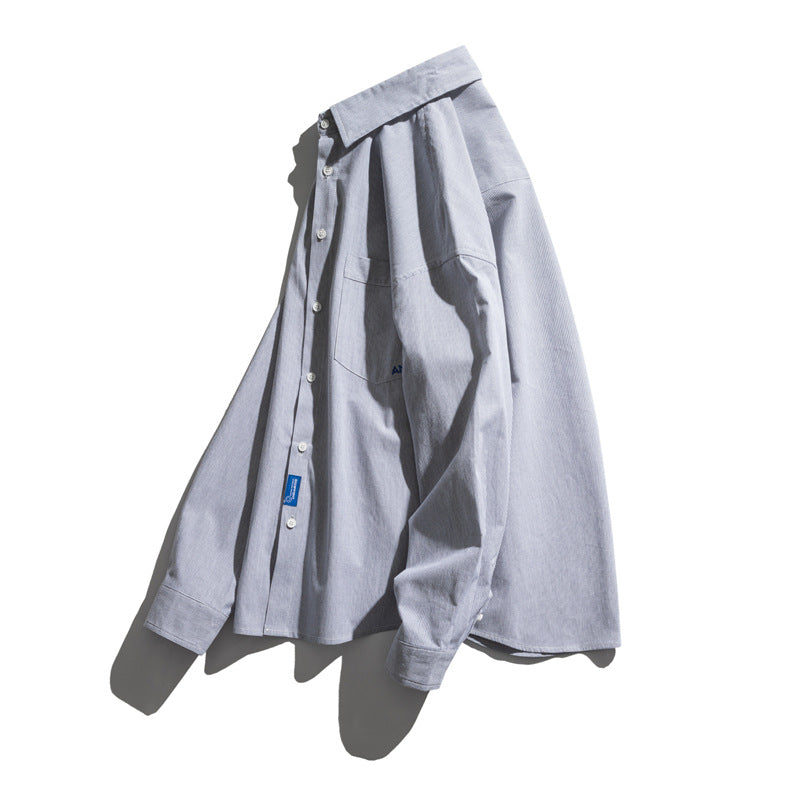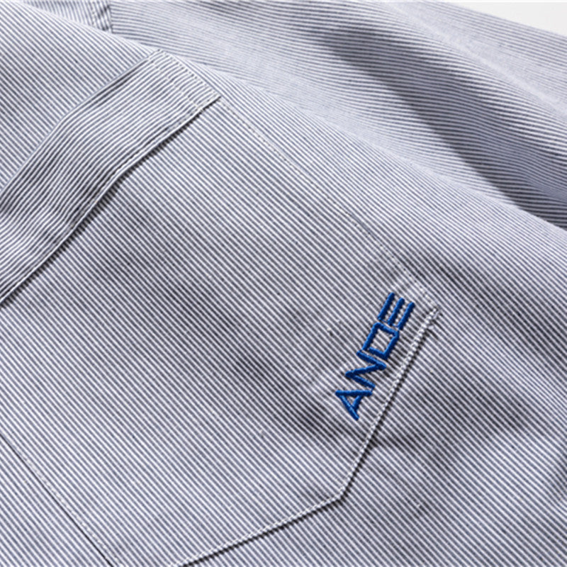 Men Shacket Long Sleeve Autumn Shirt Autumn Striped Long Sleeve Embroidered Lapel Shirt