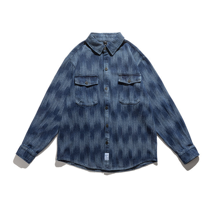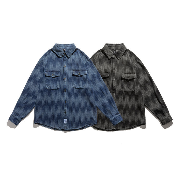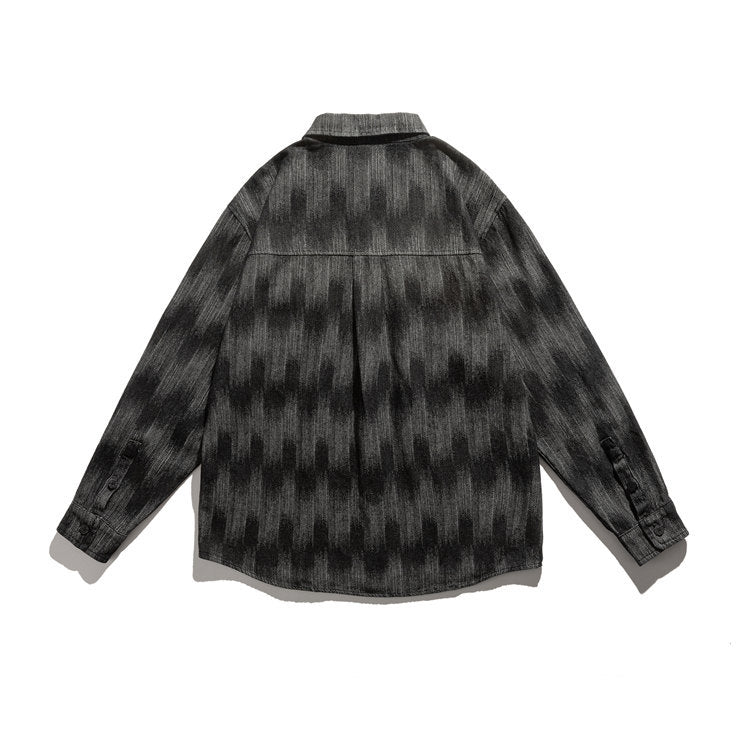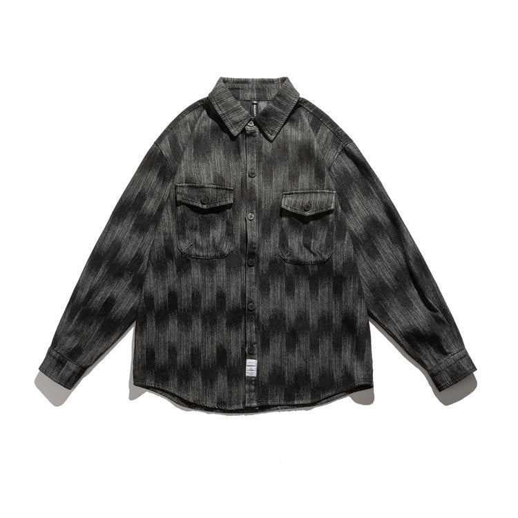 Men Shacket Long Sleeve Autumn Shirt Autumn Hip Hop Gradient Color Loose Fashion Youth Shirt Men