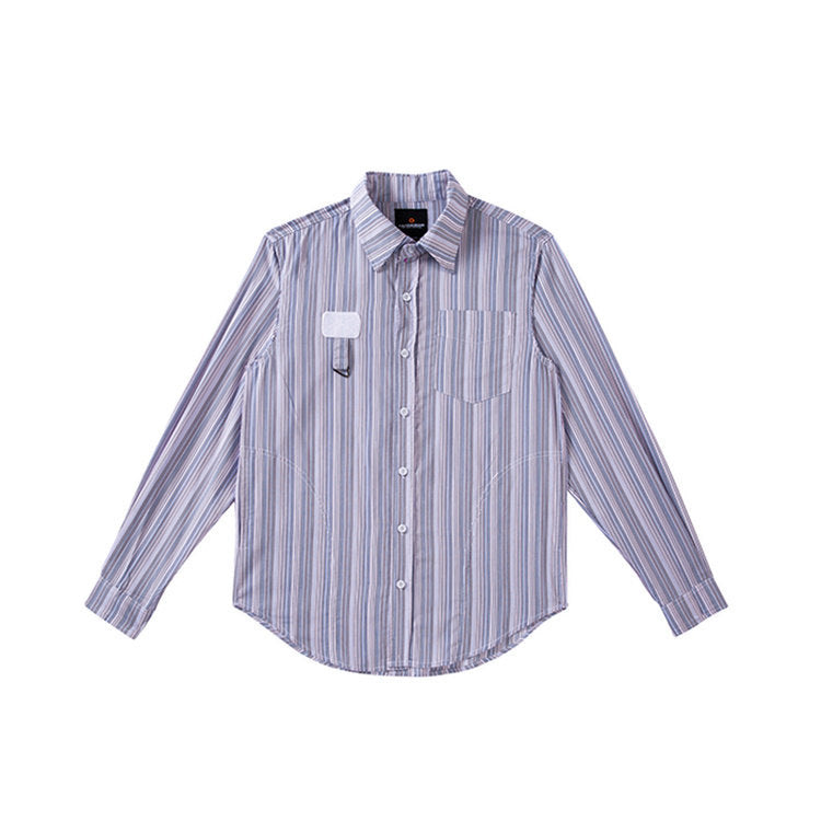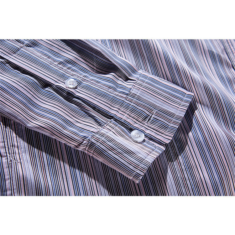 Men Shacket Long Sleeve Autumn Shirt Autumn Vintage Contrast Color Stripes Loose Shirt