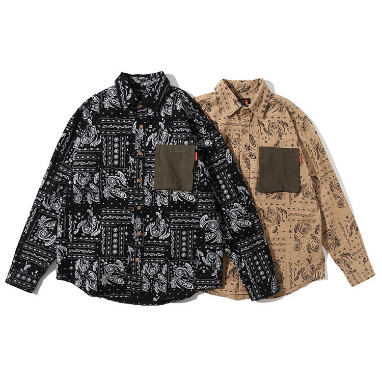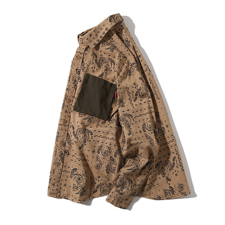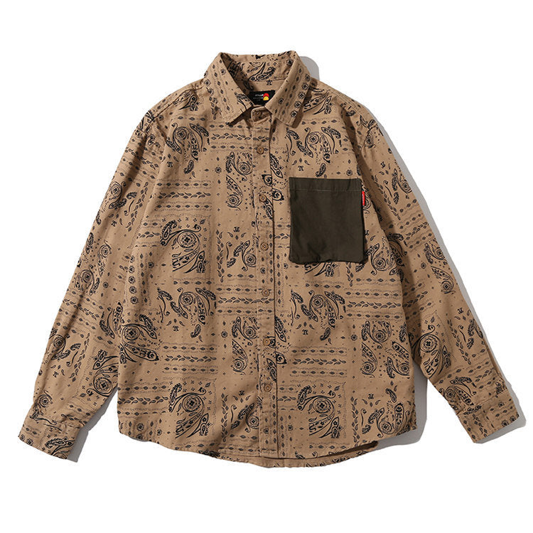 Men Shacket Long Sleeve Autumn Shirt Autumn Retro Contrast Color Pocket Casual Shirt for Men