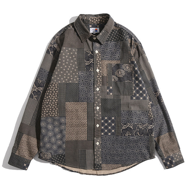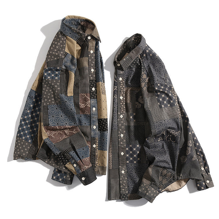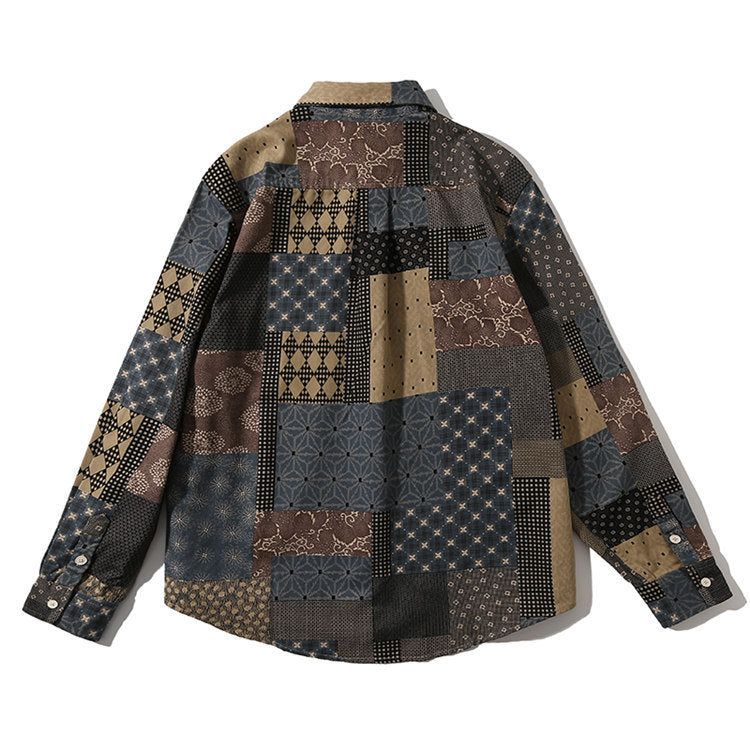 Men Shacket Long Sleeve Autumn Shirt Fall Lapels Loose Plaid Casual Retro Shirt