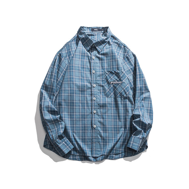 Men Shacket Long Sleeve Autumn Shirt Autumn Fashion Pocket Plaid Shirt