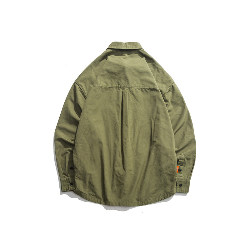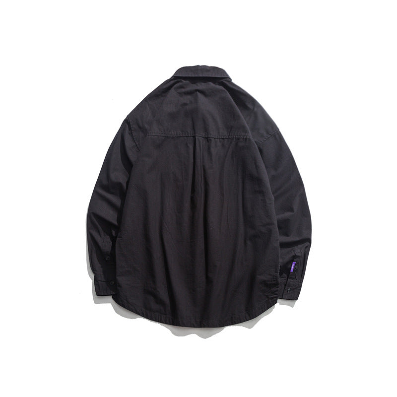 Men Shacket Long Sleeve Autumn Shirt Autumn Solid Color Jacket Lapel Pocket Top