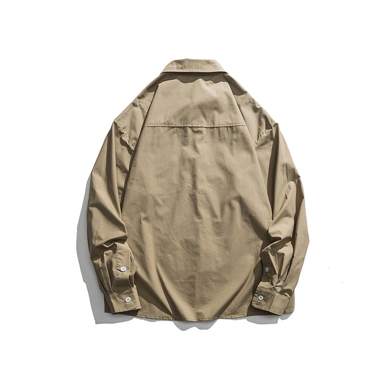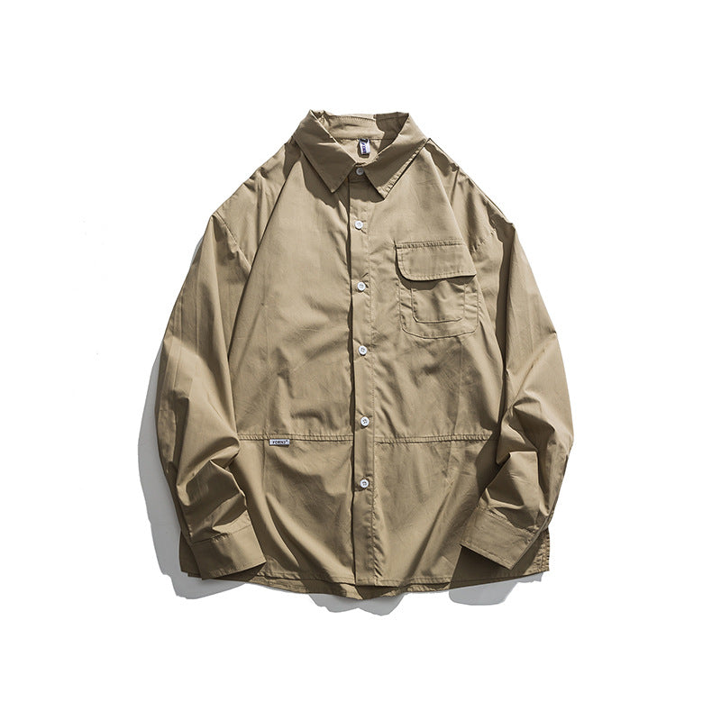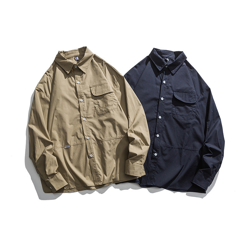 Men Shacket Long Sleeve Autumn Shirt Autumn Casual Polo Collar Workwear Shirt Simple Couple Coat