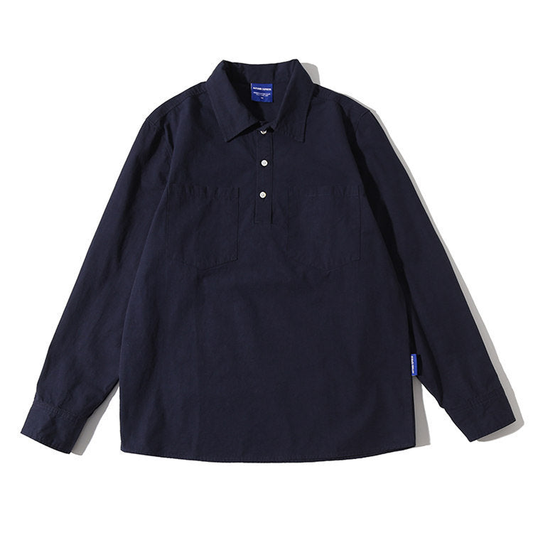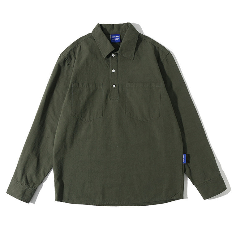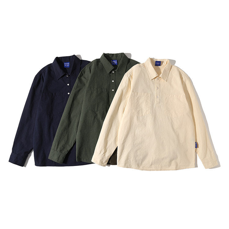 Men Shacket Long Sleeve Autumn Shirt Autumn Solid Color Retro Workwear Shirt