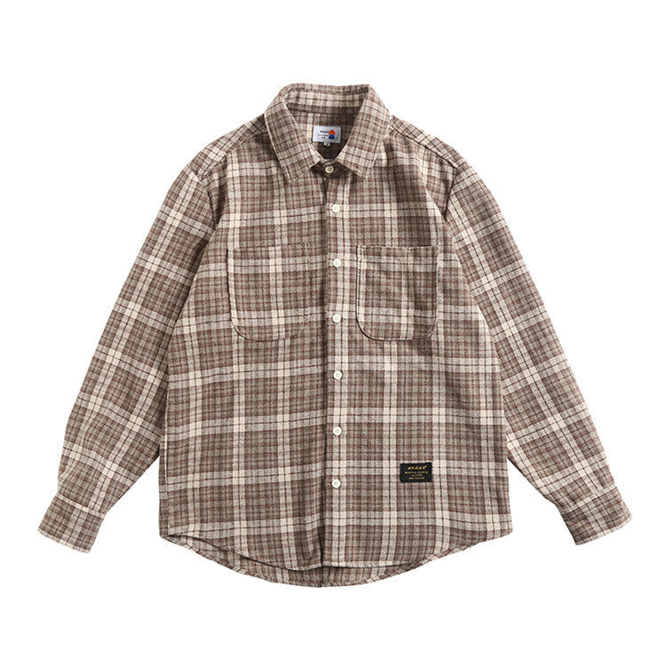 Men Shacket Long Sleeve Autumn Shirt Autumn Plaid Youth Long Sleeve Shirt