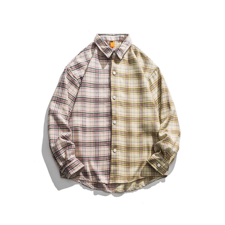 Men Shacket Long Sleeve Autumn Shirt Autumn Leisure Shirt Fresh and Loose Retro Plaid Shirt