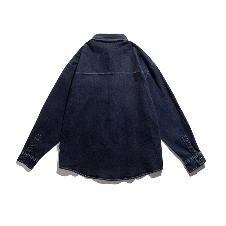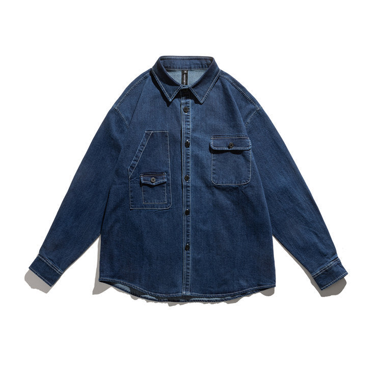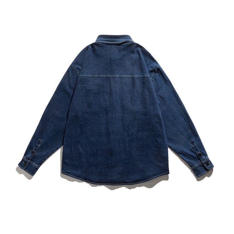Men Shacket Long Sleeve Autumn Shirt Autumn Solid Color Vintage Denim Shirt Men