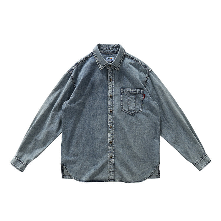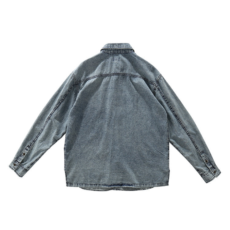 Men Shacket Long Sleeve Autumn Shirt Autumn Snowflake Washed-out Vintage Loose Denim Casual Shirt