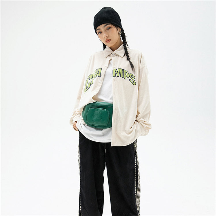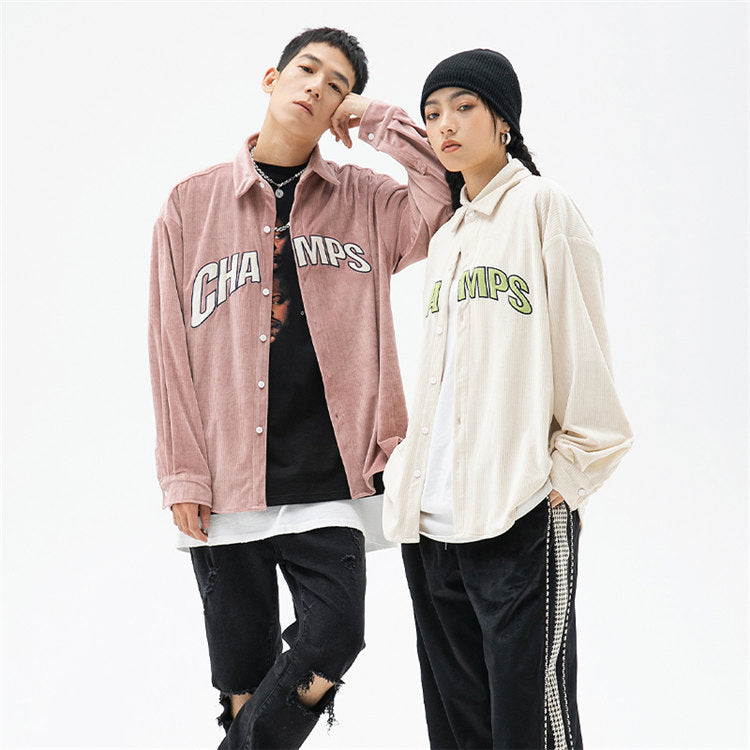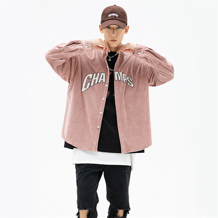 Men Shacket Long Sleeve Autumn Shirt Autumn Letter Embroidery Loose Shirt