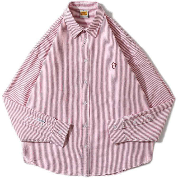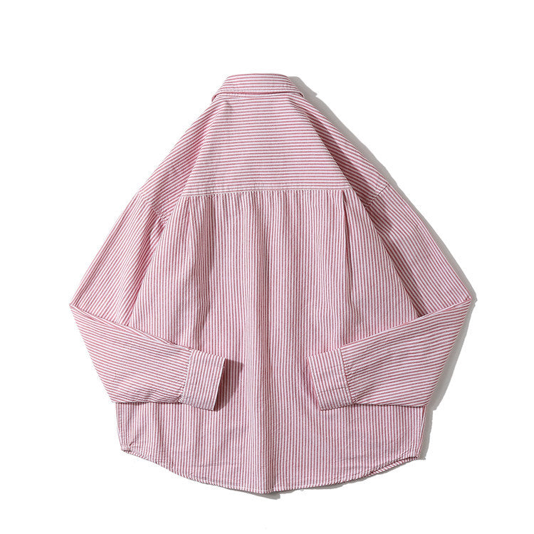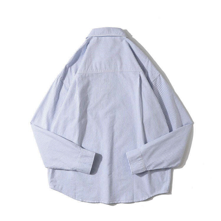 Men Shacket Long Sleeve Autumn Shirt Autumn Youth Shirt Loose Striped Casual Shirt for Campus Students Men
