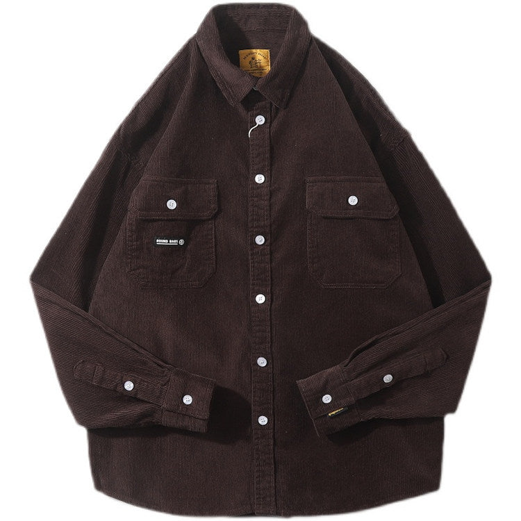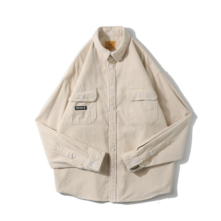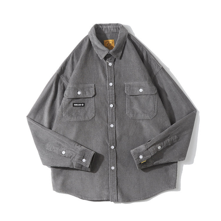 Men Shacket Long Sleeve Autumn Shirt Autumn Leisure Loose Fashion Retro Leisure Cargo Shirt