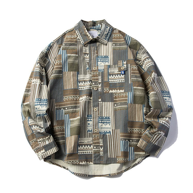 Men Shacket Long Sleeve Autumn Shirt Autumn Vertical Bar Plaid Loose Fashion Casual Shirt