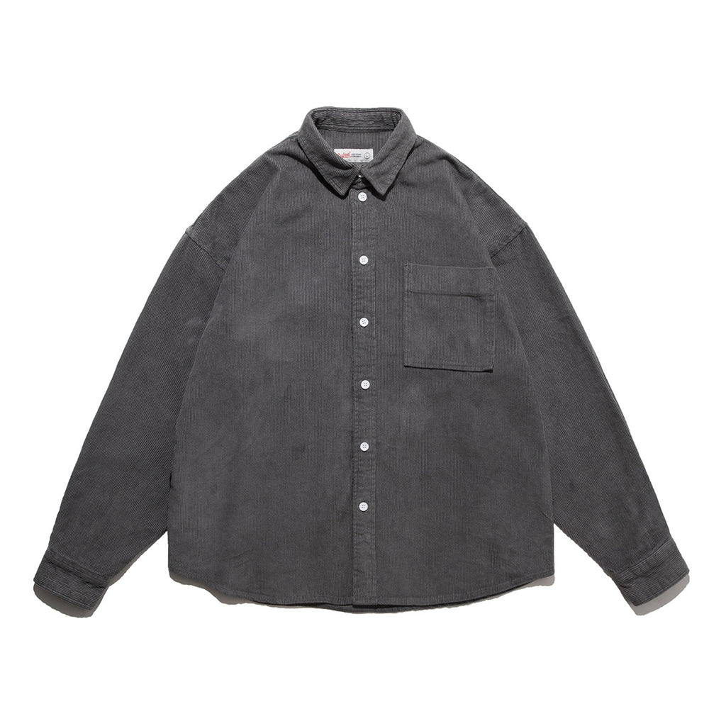 Men Shacket Long Sleeve Autumn Shirt Autumn Lapel Shirt Loose Solid Color Corduroy Casual Shirt for Men