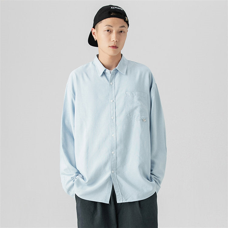 Men Shacket Long Sleeve Autumn Shirt Autumn Solid Color Simple Cityboy Youth Shirt