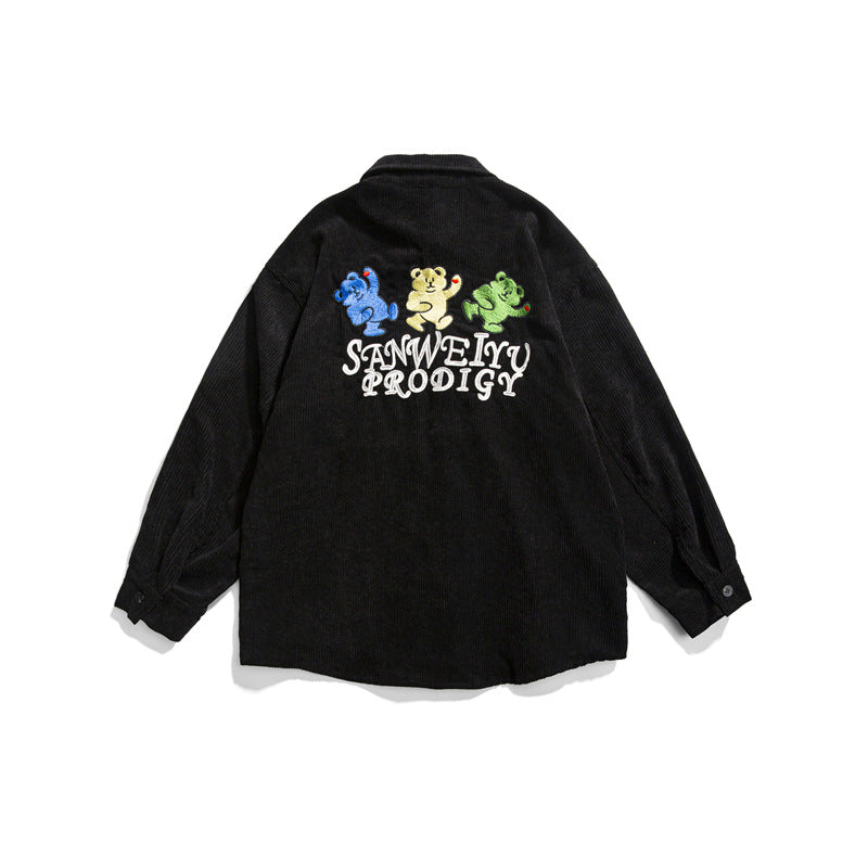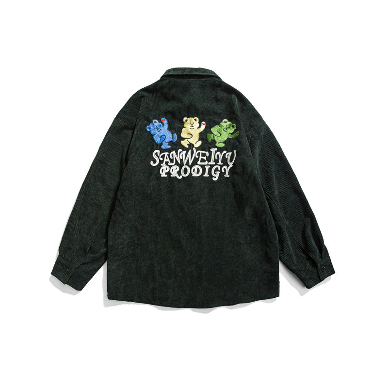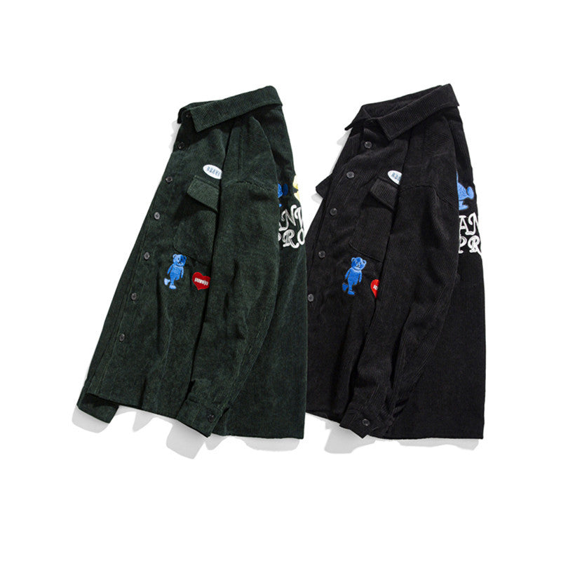Men Shacket Long Sleeve Autumn Shirt Autumn Corduroy Cartoon Embroidered Lapel Top for Men
