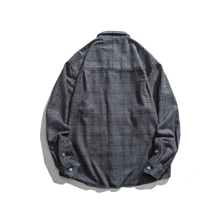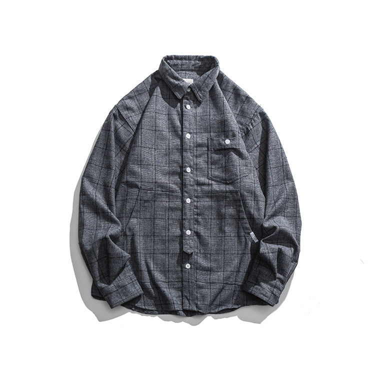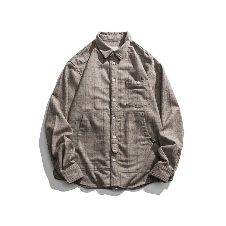 Men Shacket Long Sleeve Autumn Shirt Autumn Campus Student Large Pocket Loose Casual Plaid Shirt