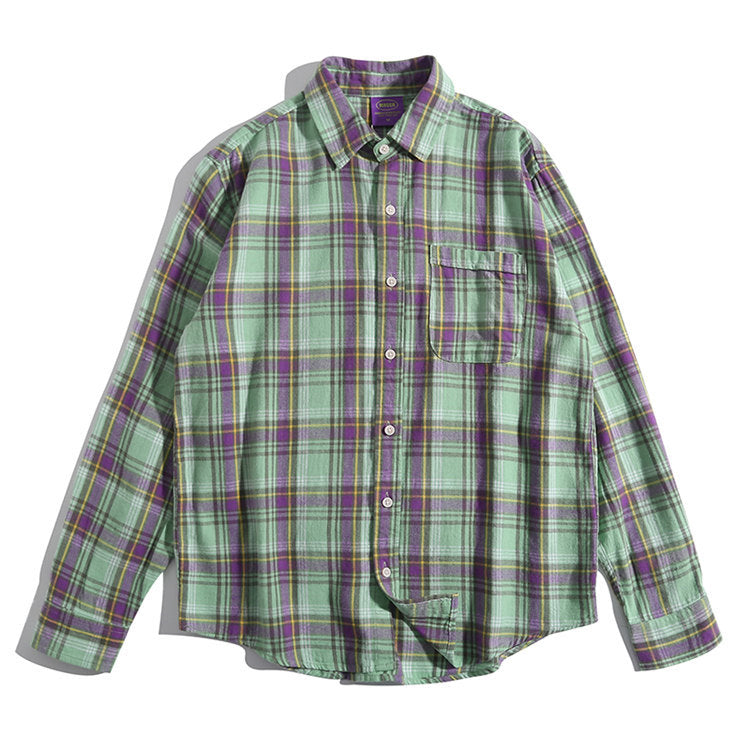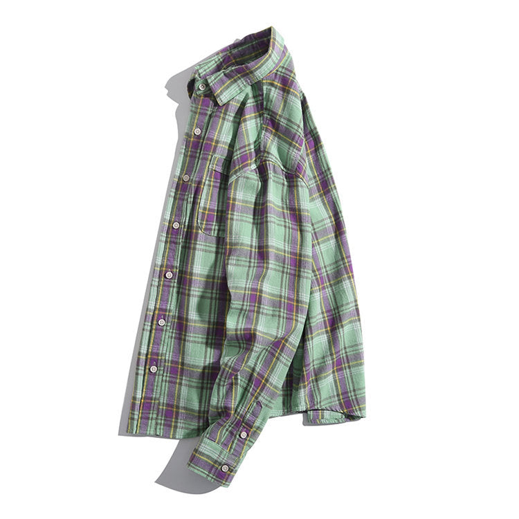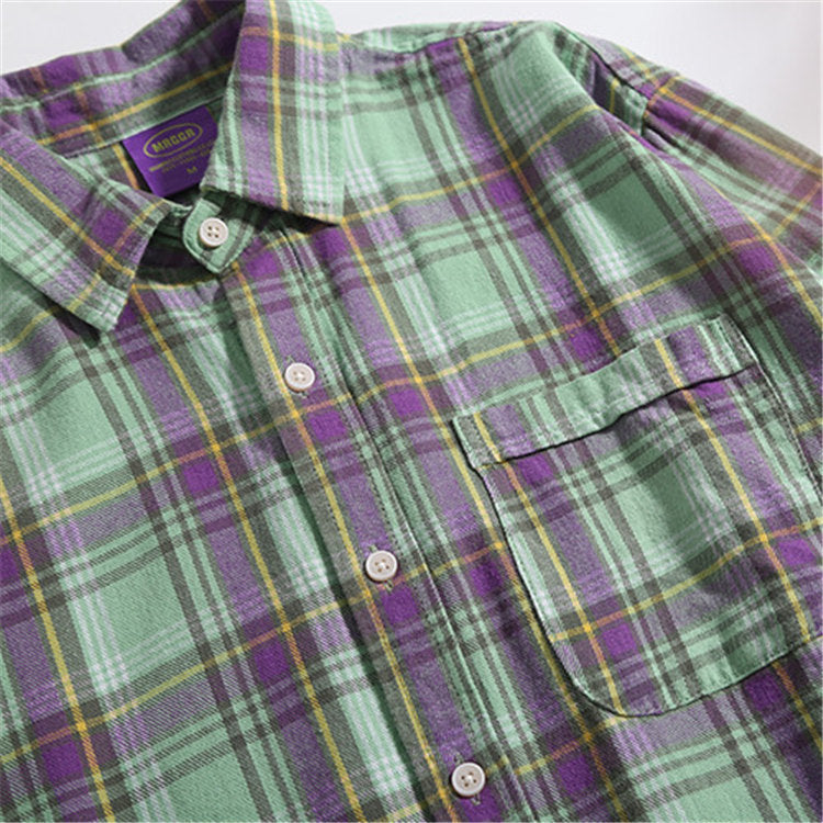 Men Shacket Long Sleeve Autumn Shirt Autumn Fresh and Loose Lapel Cardigan Plaid Shirt for Men