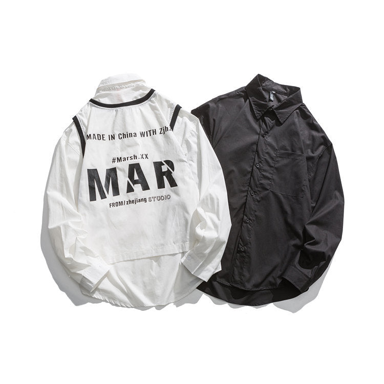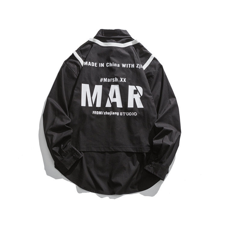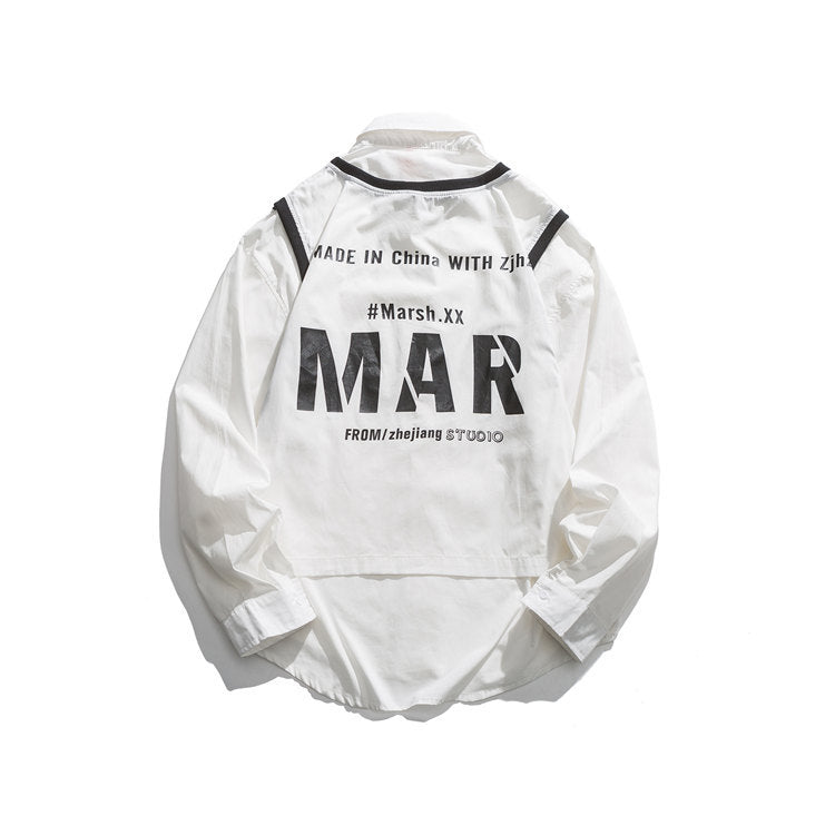 Men Shacket Long Sleeve Autumn Shirt Autumn Personality Letter Print Shirt