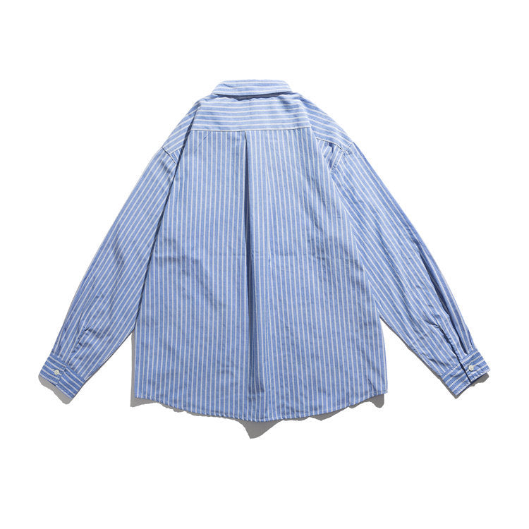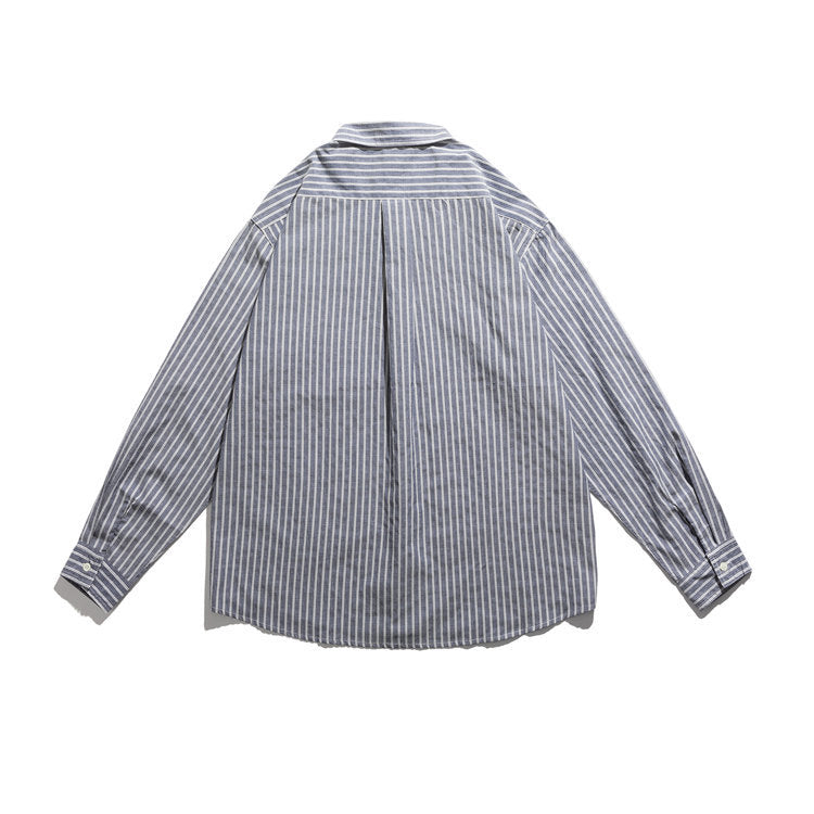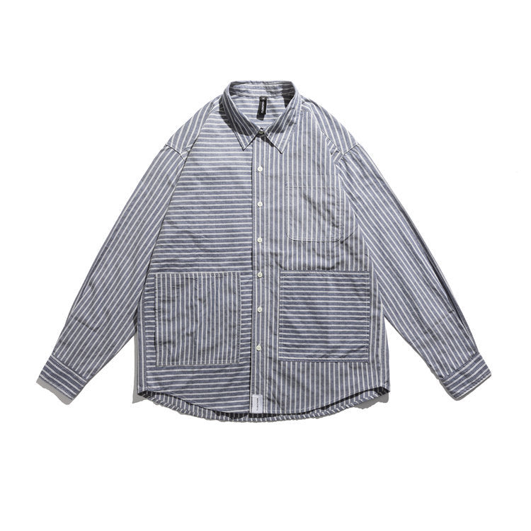 Men Shacket Long Sleeve Autumn Shirt Autumn Shirt Campus Student Three-Dimensional Pocket Loose Striped Shirt Men