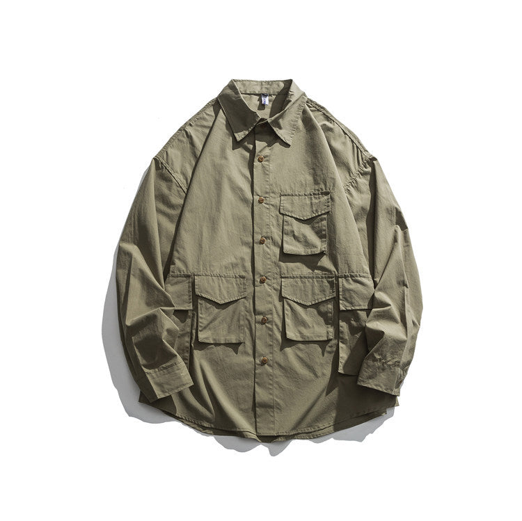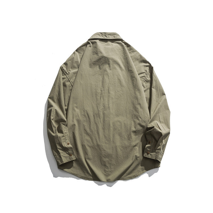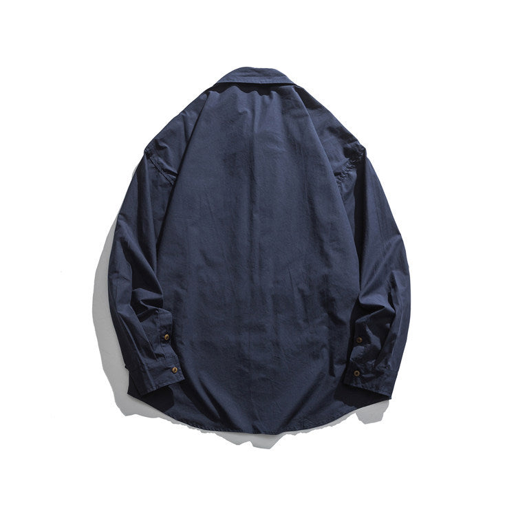 Men Shacket Long Sleeve Autumn Shirt Autumn Shirt Solid Color Casual Retro Loose Casual Shirt Men