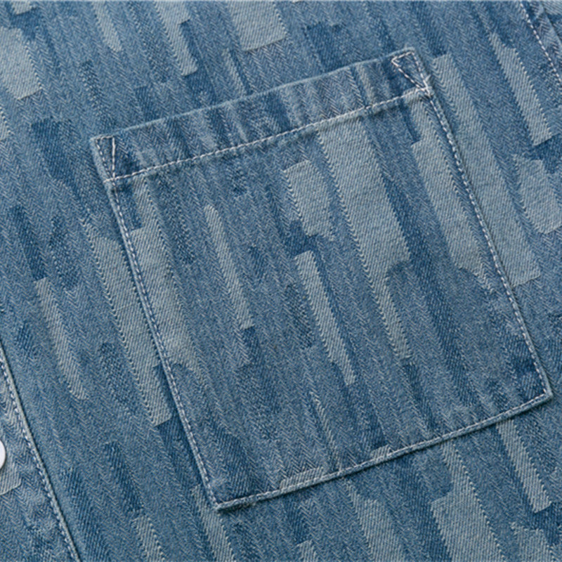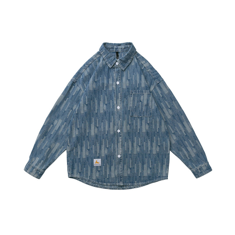 Men Shacket Long Sleeve Autumn Shirt Autumn Jacquard Denim Long Sleeve Loose Shirt Men