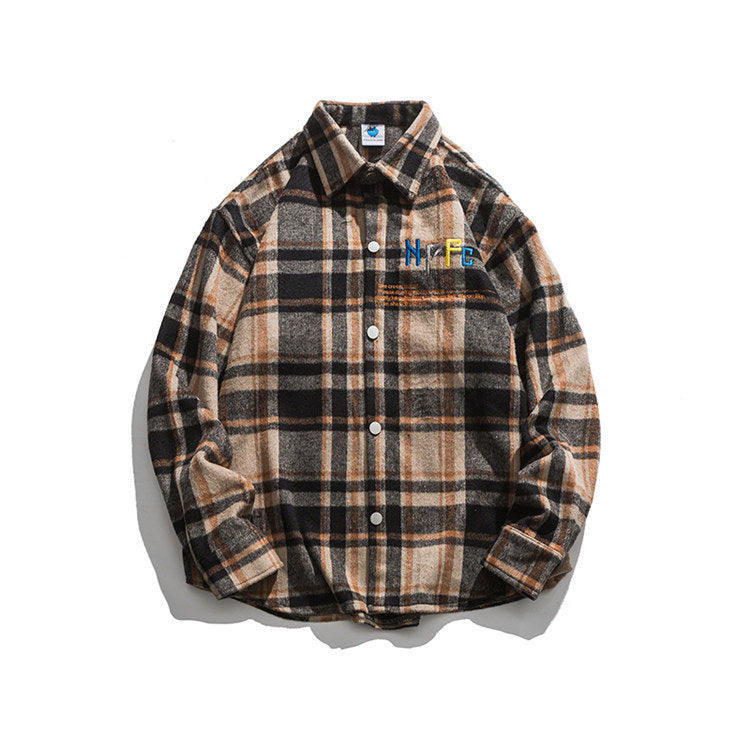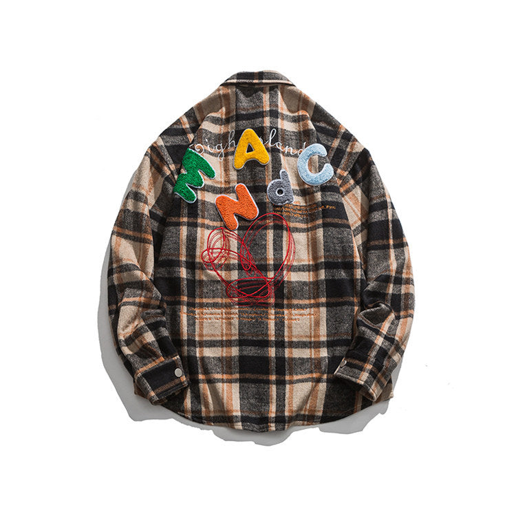 Men Shacket Long Sleeve Autumn Shirt Fall Campus Towel Embroidery Men's Shirt