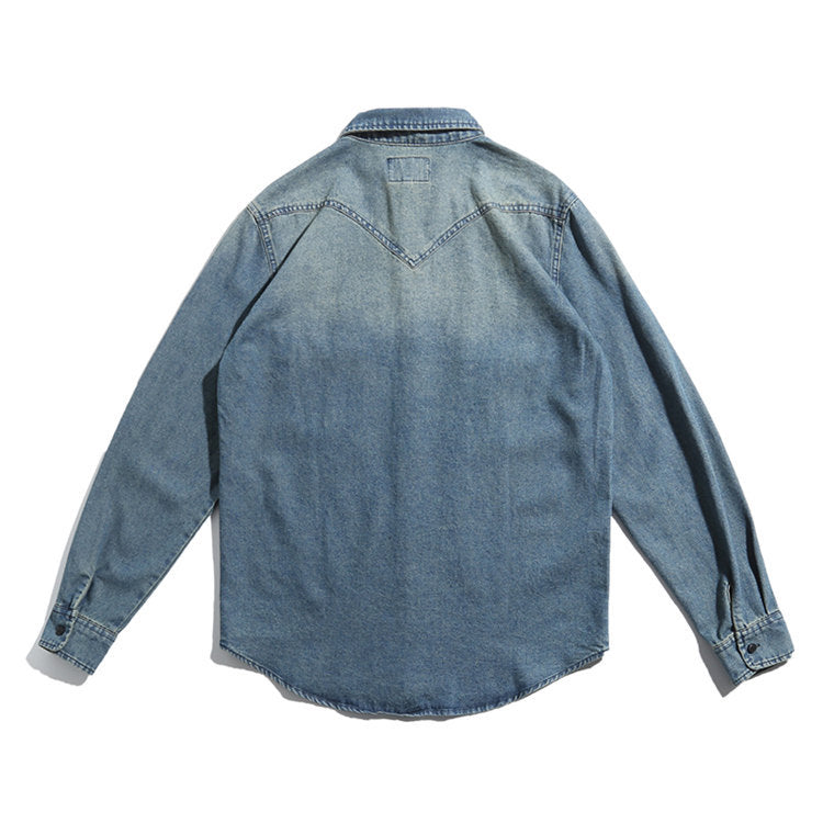 Men Shacket Long Sleeve Autumn Shirt Autumn Shirt Washed Distressed Loose Retro Denim Shirt Men