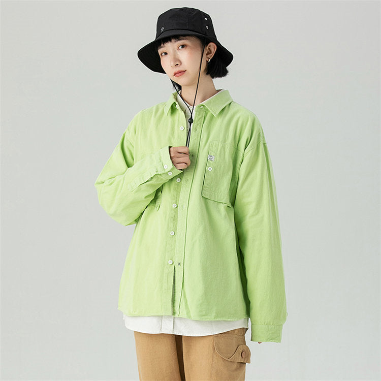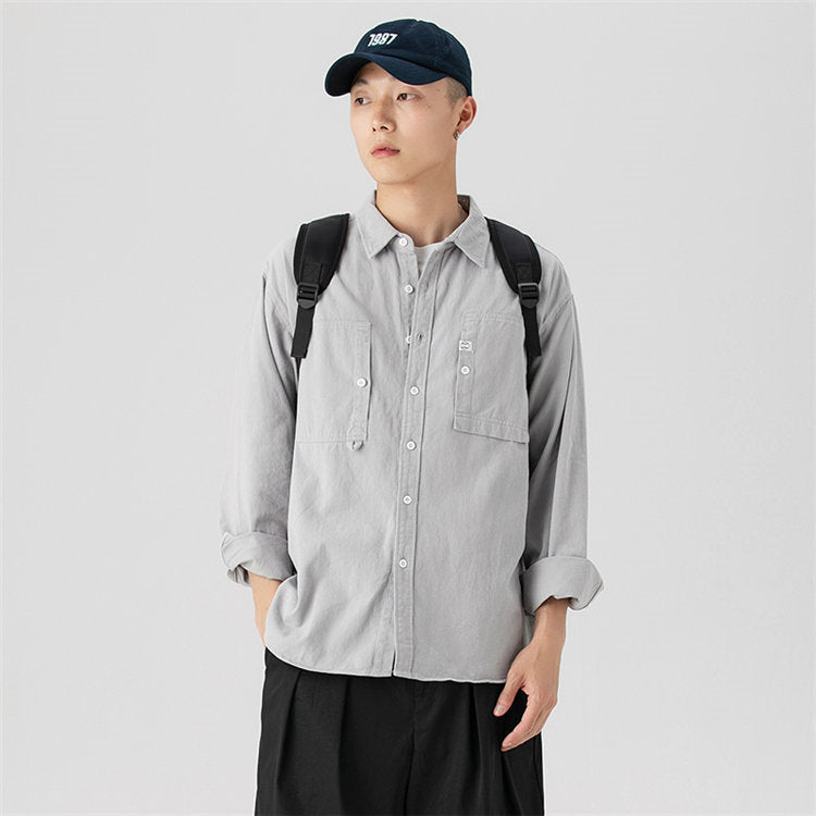 Men Shacket Long Sleeve Autumn Shirt Autumn Solid Color Loose Shirt