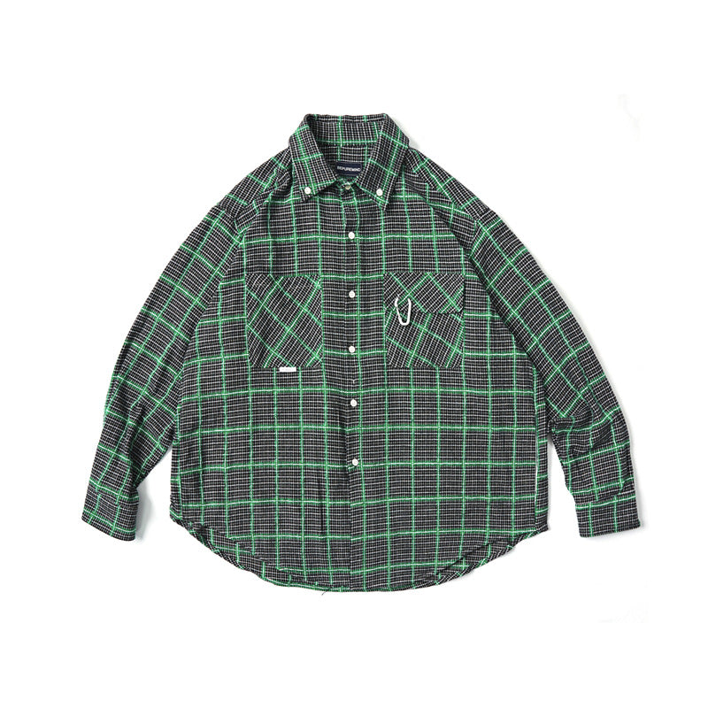 Men Shacket Long Sleeve Autumn Shirt Autumn Large Plaid 4-Pocket Shirt