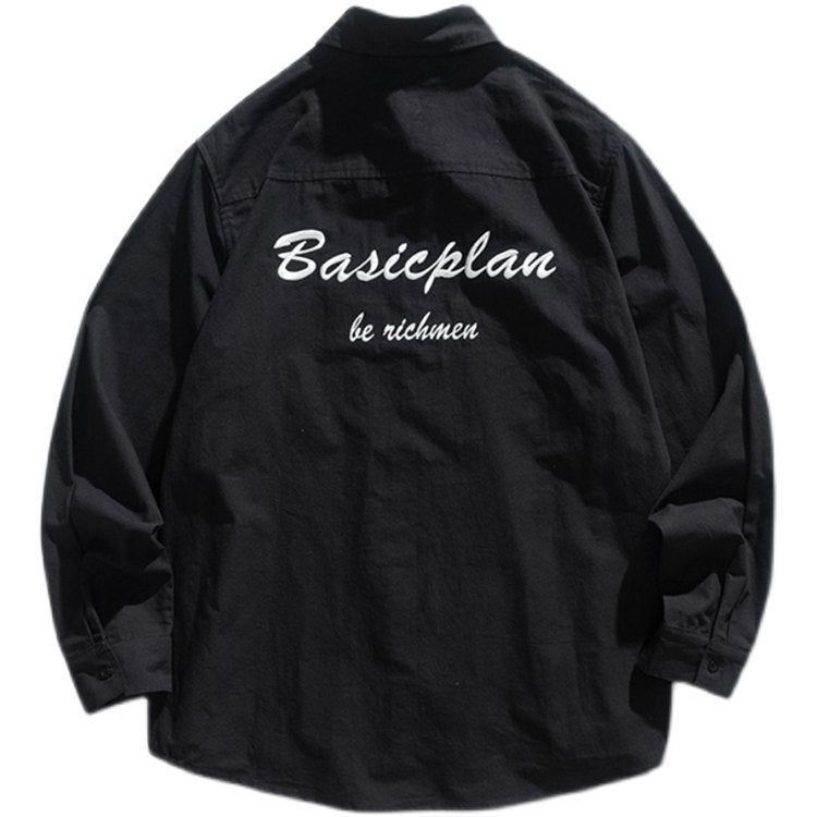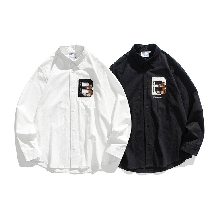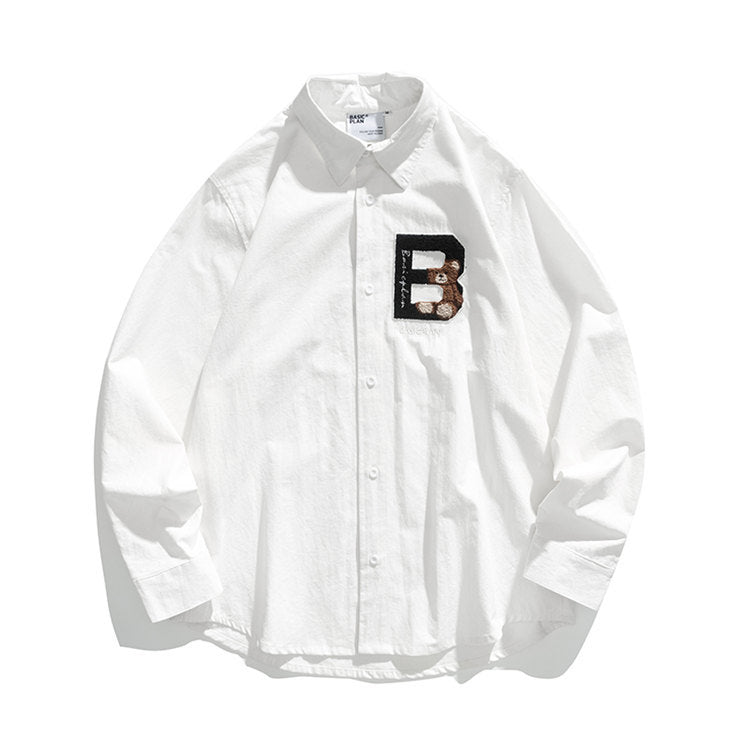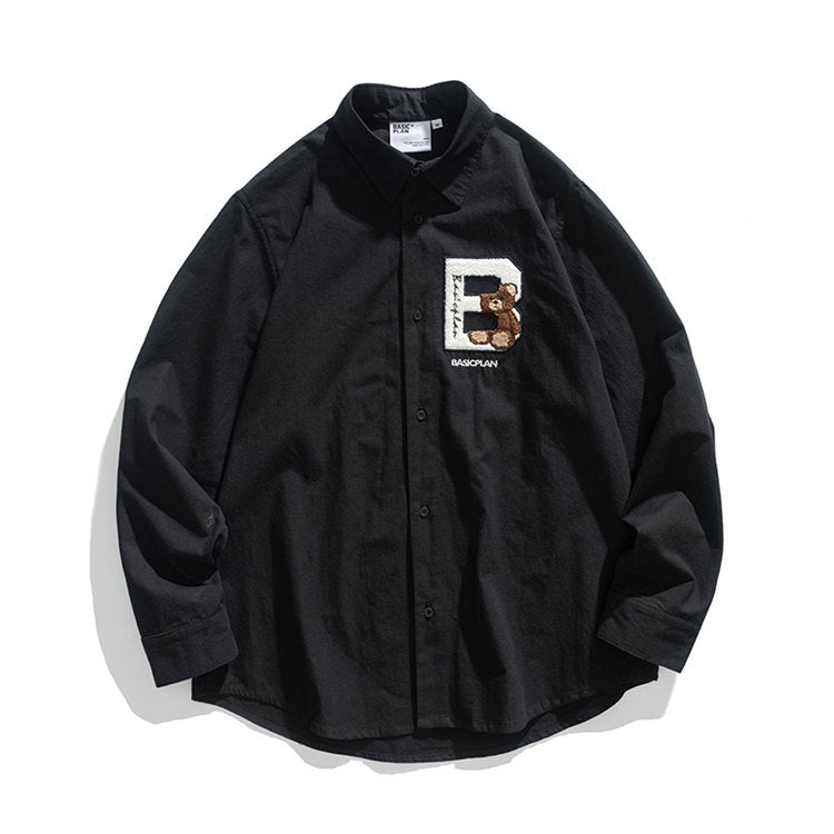 Men Shacket Long Sleeve Autumn Shirt Autumn Bear Embroidery Loose Shirt Men
