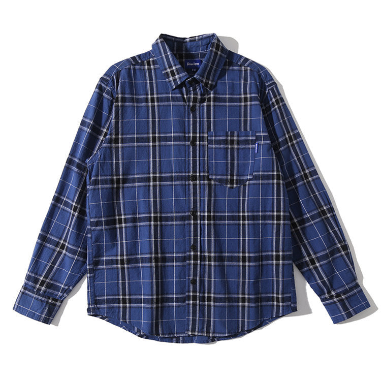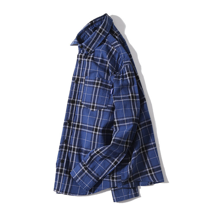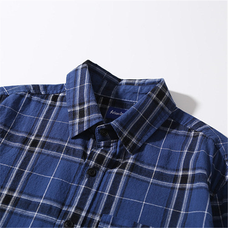 Men Shacket Long Sleeve Autumn Shirt Autumn Plaid Youth Casual Shirt