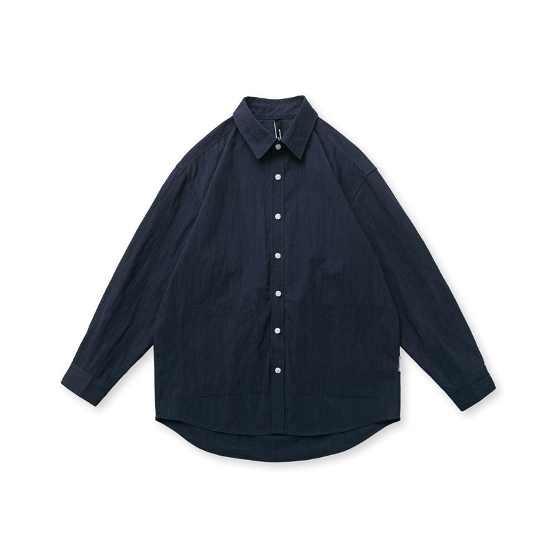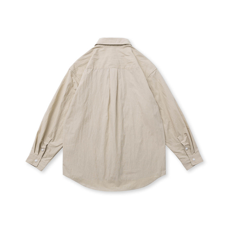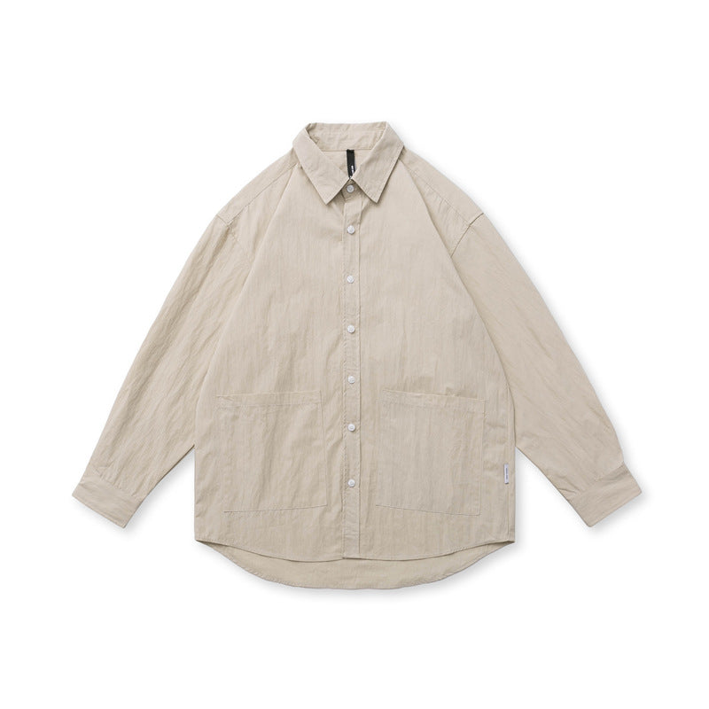 Men Shacket Long Sleeve Autumn Shirt Autumn Solid Color Pleated Washed Patch Pocket Casual Long Sleeve Shirt Men
