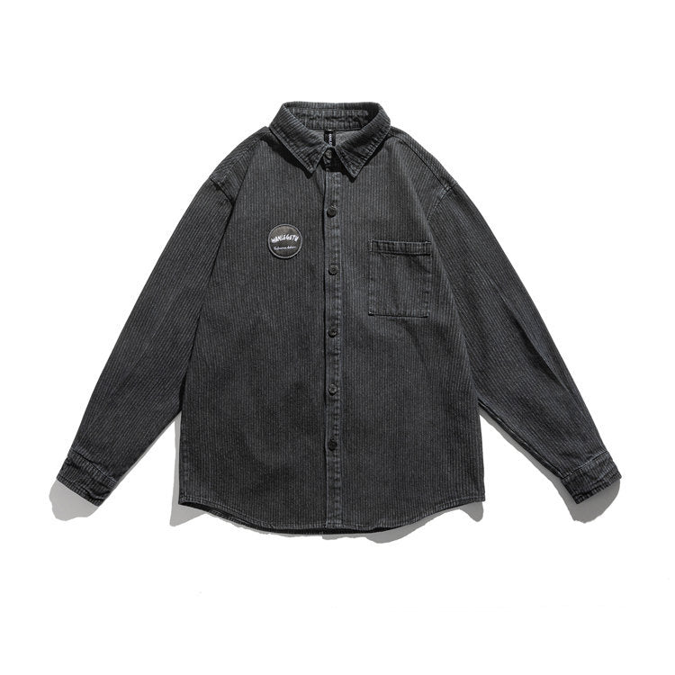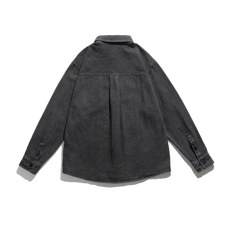 Men Shacket Long Sleeve Autumn Shirt Autumn Shirt Japanese Style Youth Fashion Loose Comfortable Vertical Striped Denim Shirt