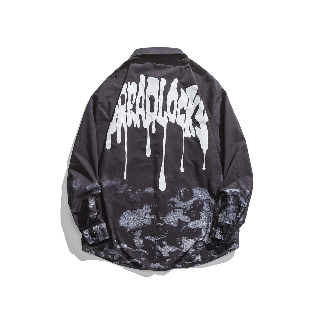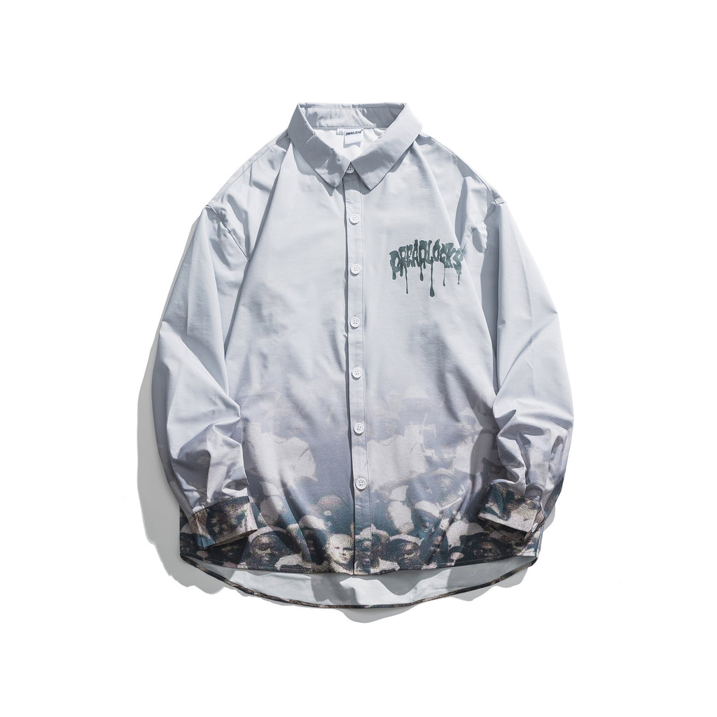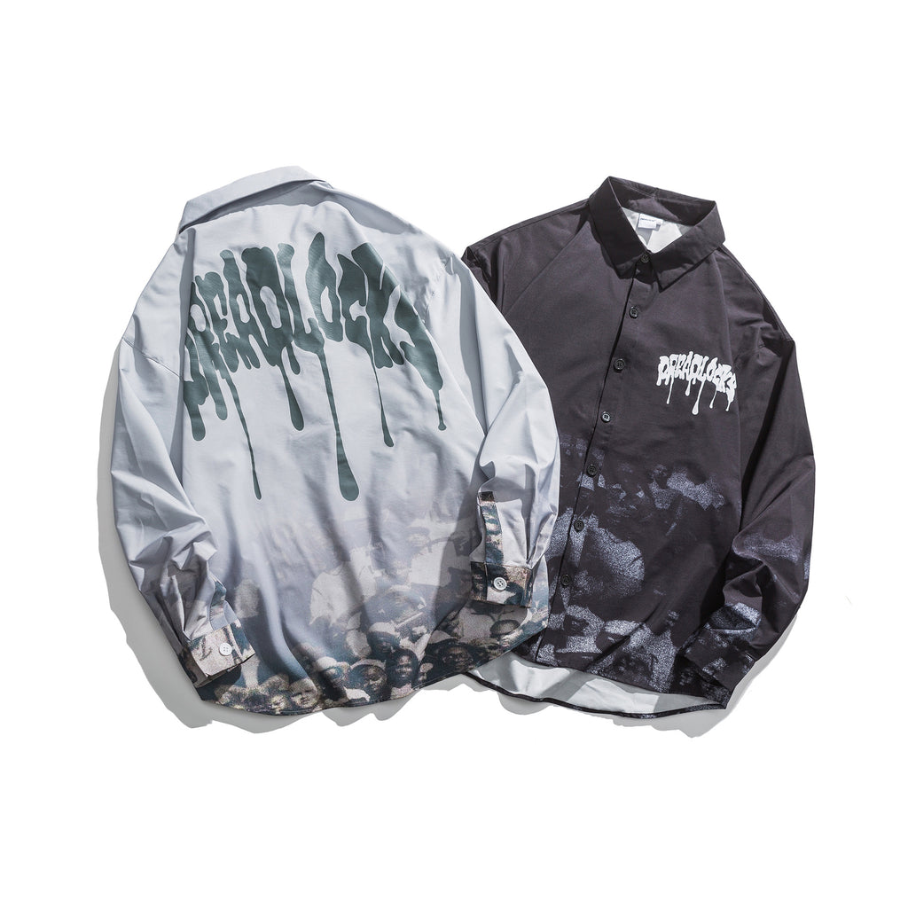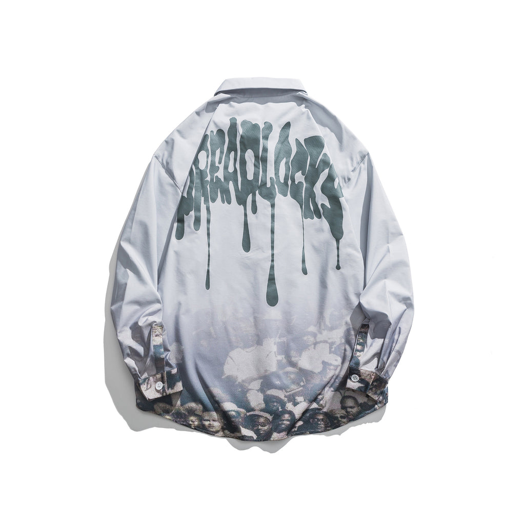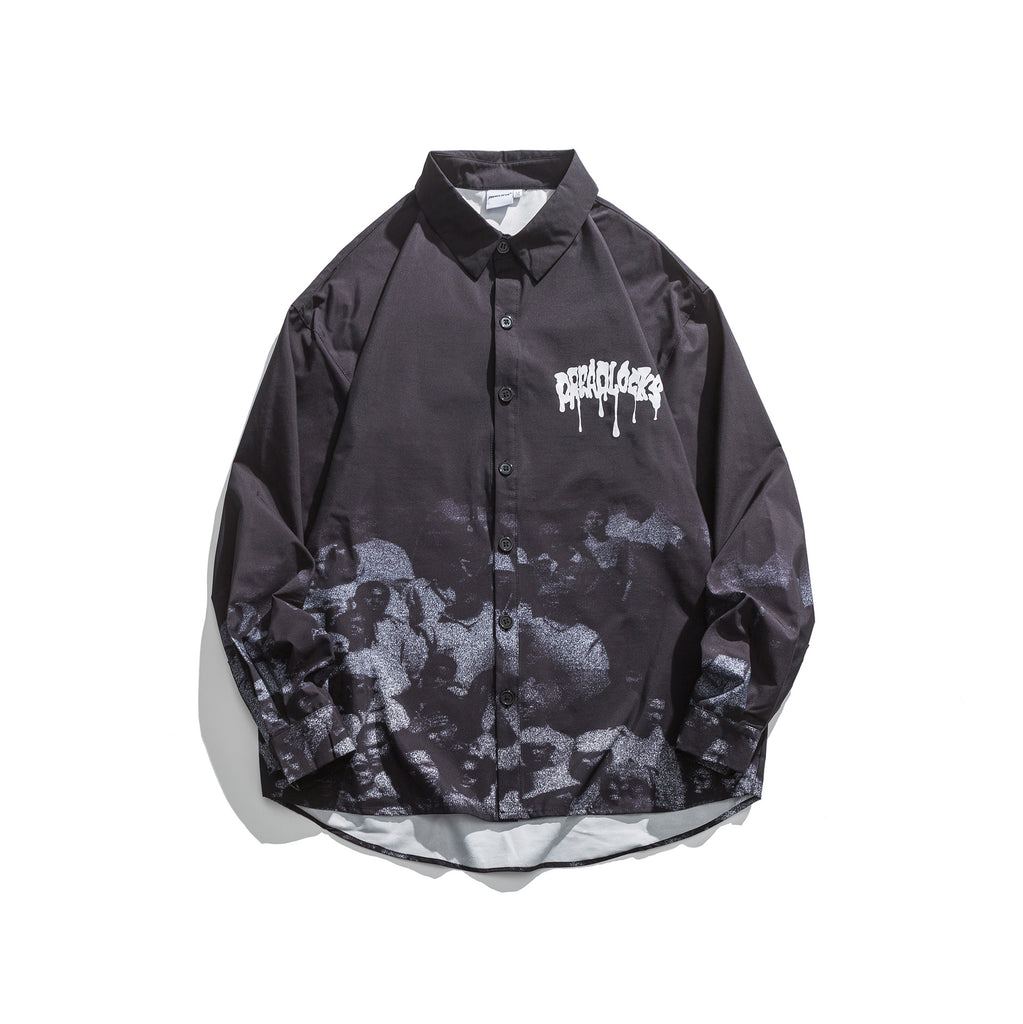 Men Shacket Long Sleeve Autumn Shirt Autumn Leisure Shirt Fashionable Neutral Printing Lapel Shirt