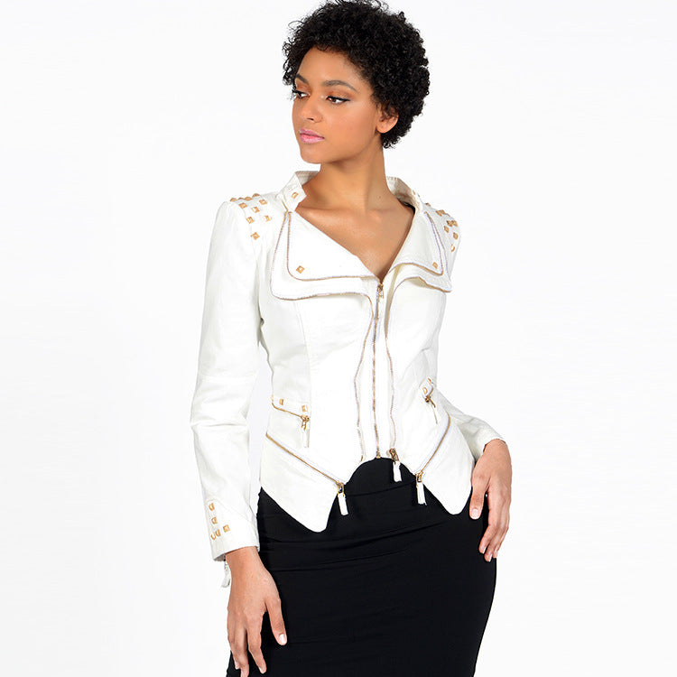 Studded Jackets Slim Fit Shrug Rivet Zipper Short Stitching Denim Motorcycle Jacket Women