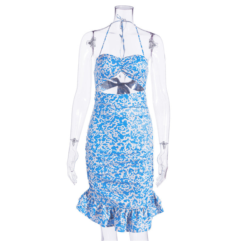 Drawstring Tight Homecoming Dresses Leopard Print Ruffled Skirt Sexy Tight Short Backless Dress