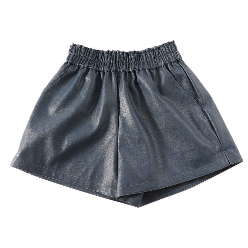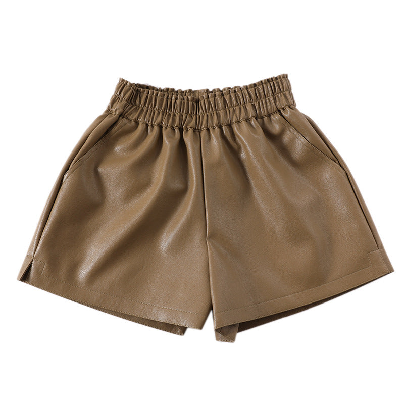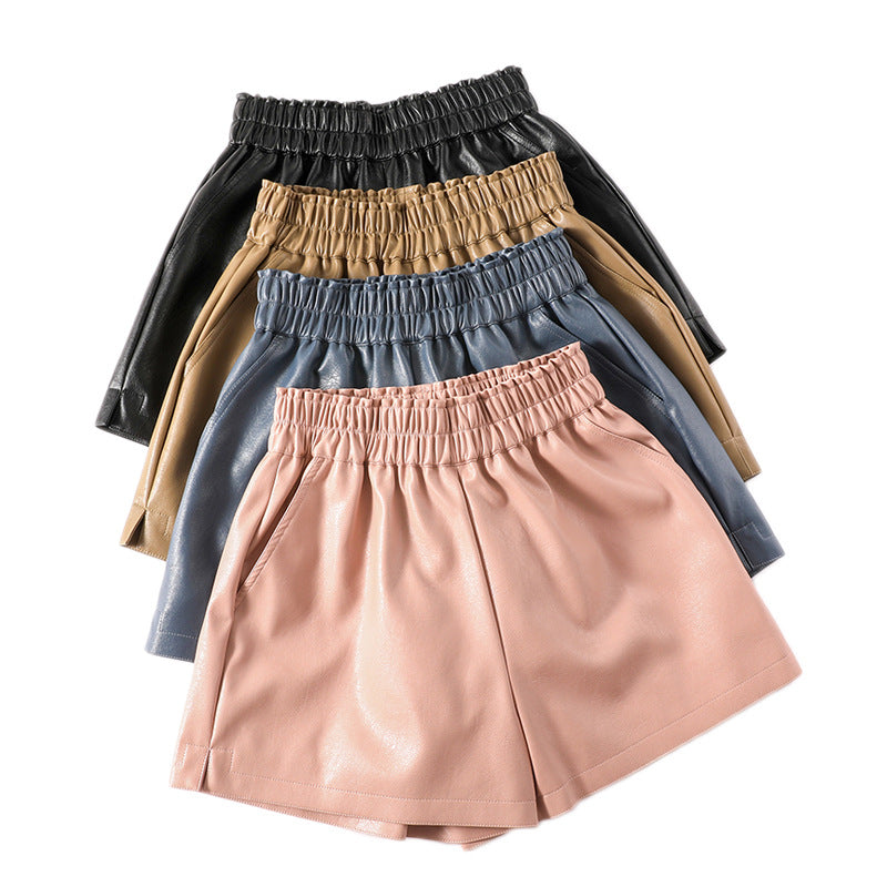 Leather Shorts Autumn and Winter High Waist A- Line plus Size Loose Boot Pants PU Leather Outer Wear Wide Leg Shorts