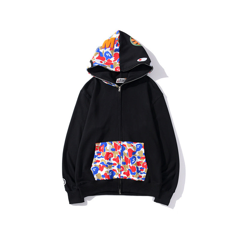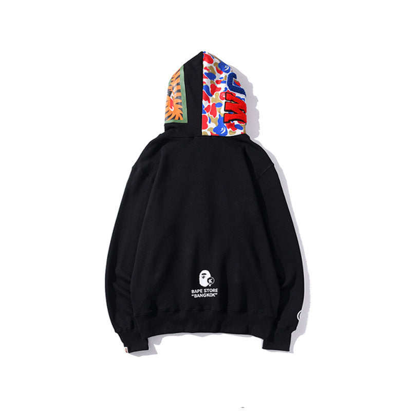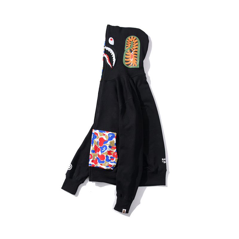 Shark Print Shark Head Color Matching Camouflage Kangaroo Pocket Sweatshirt Youth Popularity Cardigan Hoodie