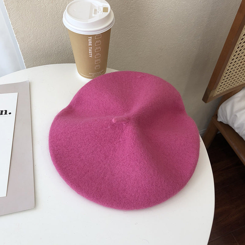 Beret Hat Pure Color Wool Women's Autumn and Winter Painter Cap Retro