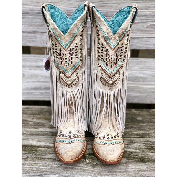 Beyonce Coachella Boots Pointed Toe Dr. Martens Boots Mid-Calf Viscose Shoes Tassel Boots Ethnic Retro Women's Shoes
